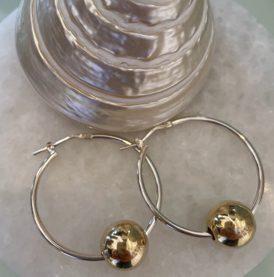Rue Two-Toned Hoop Earrings Yellow Gold Ball Sterling Silver