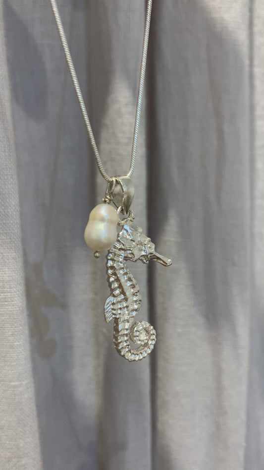 Seahorse Pendant & Freshwater Pearl Necklace Sterling Silver