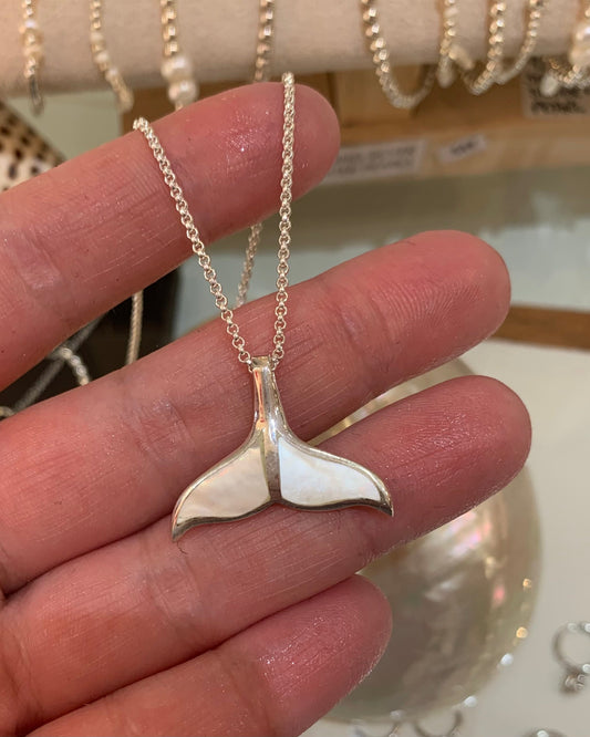 Kai Mother of Pearl Whale Tail Pendant Necklace Sterling Silver