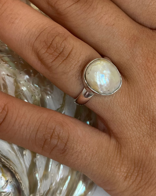 Selene Baroque Pearl Banded Ring Sterling Silver