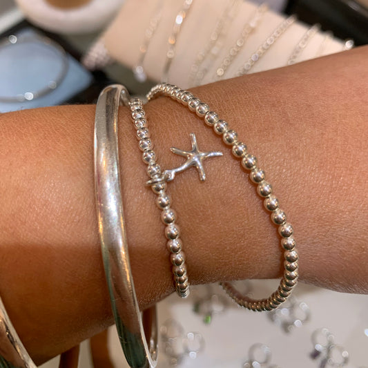 Beaded 925 Sterling Silver Starfish Charm Bracelet