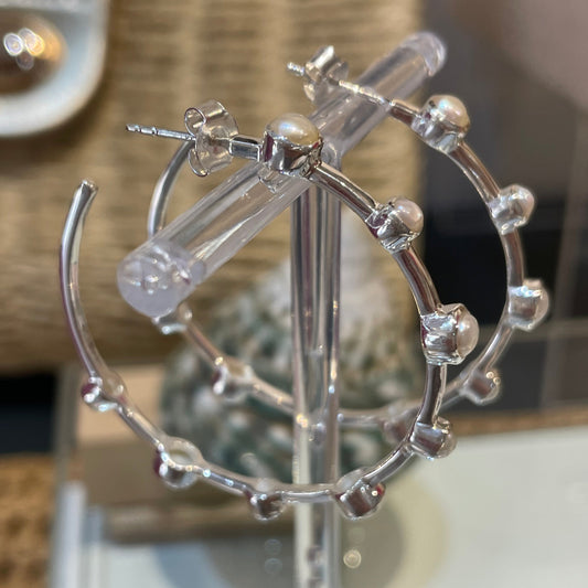 Fleur Freshwater Pearl Hoop Stud Earrings