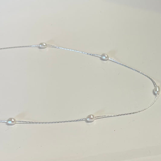 Eva Freshwater Pearl Ball Chain Necklace - Silver