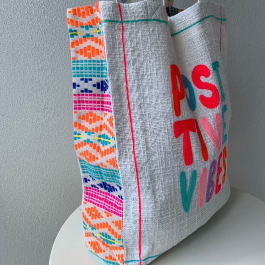 Sold outPOSITIVE VIBES Embroidered Tote Bag
