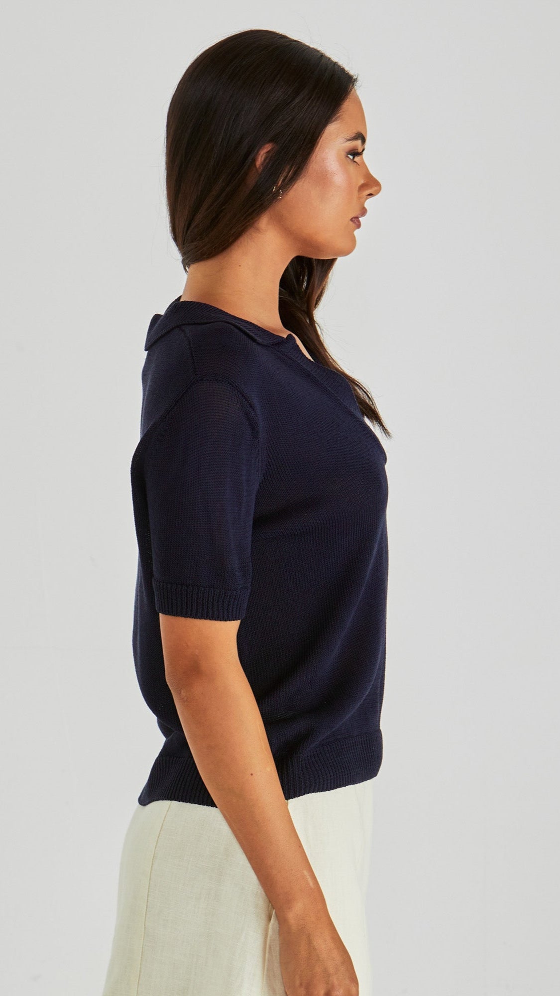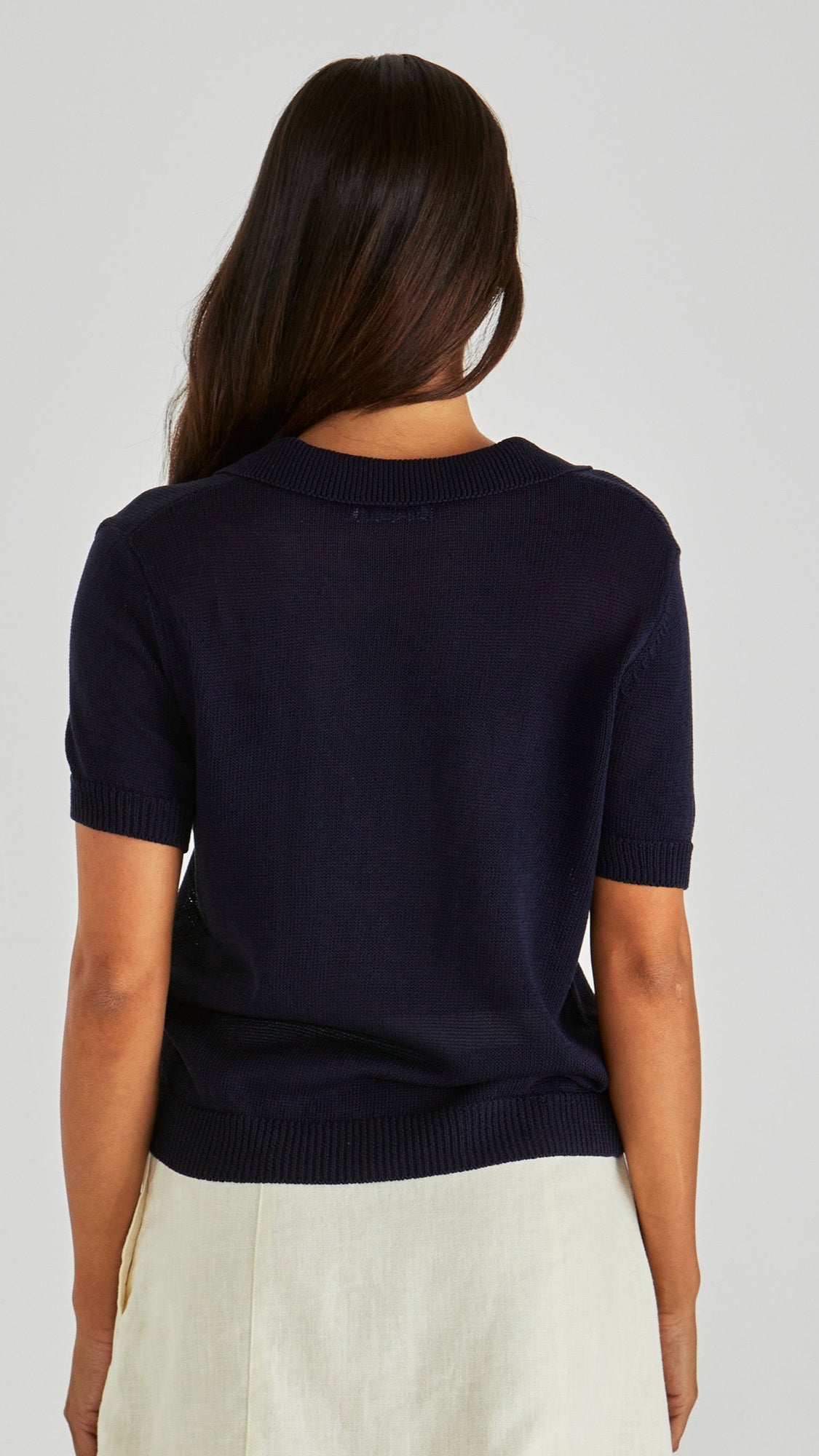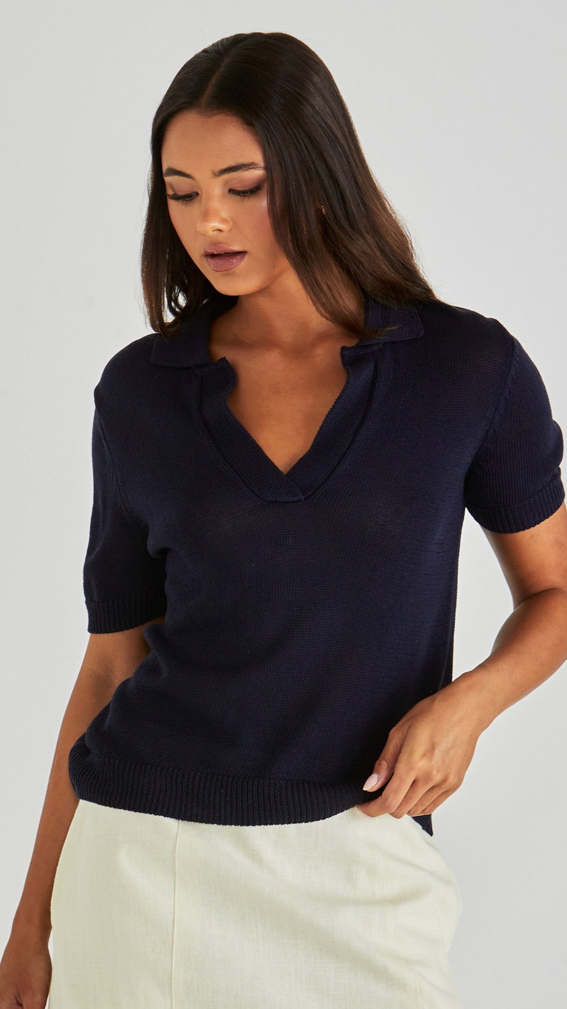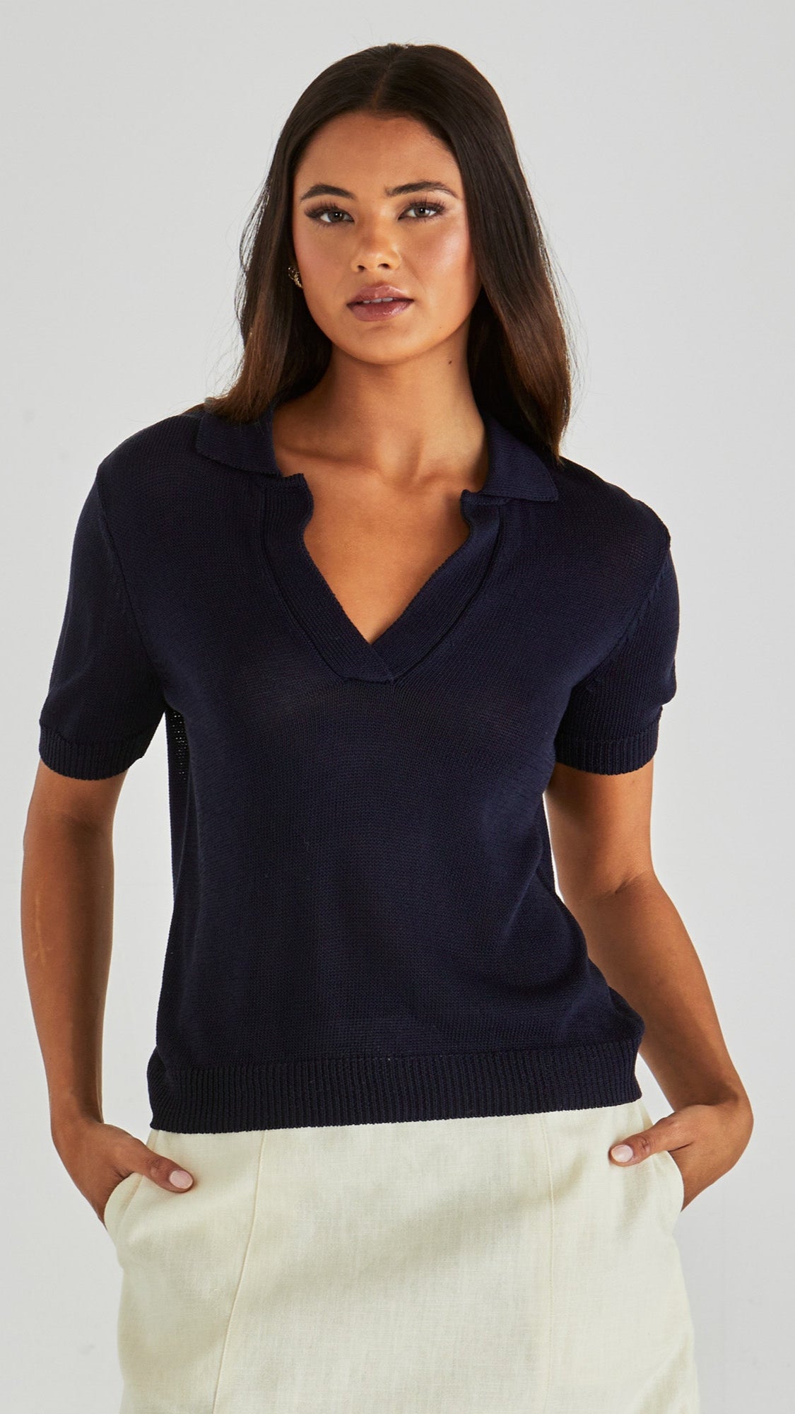 An effortless summer staple, the Abbie Knit Polo is crafted from a soft knit and finished with a classic polo collar. The placket detail gives it an elevated feel, while the lightweight, not-sheer design keeps things cool and casual. It's your go-to for everyday ease with a touch of polish.