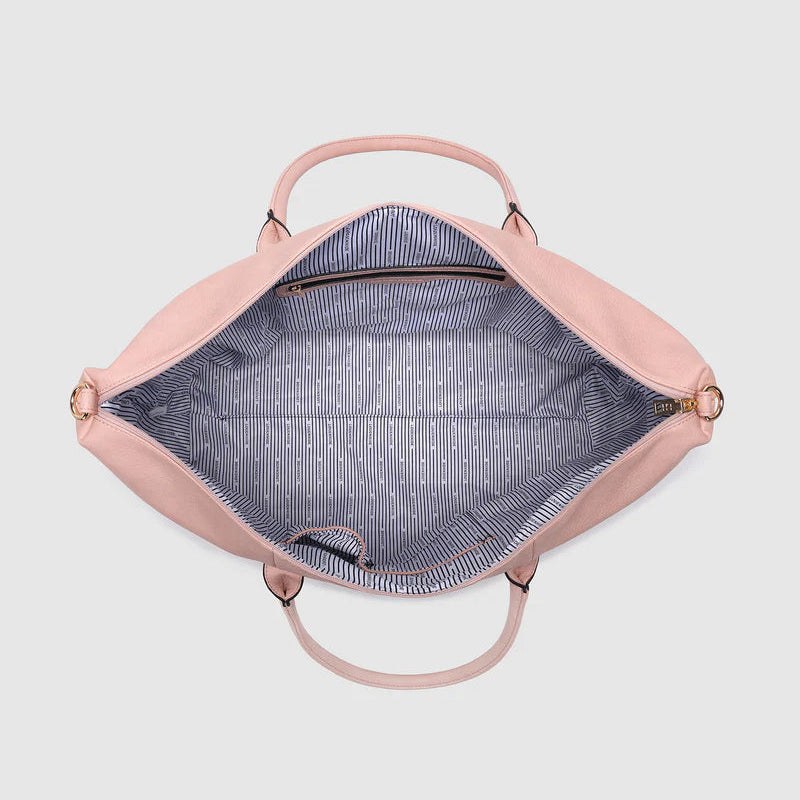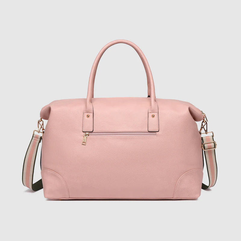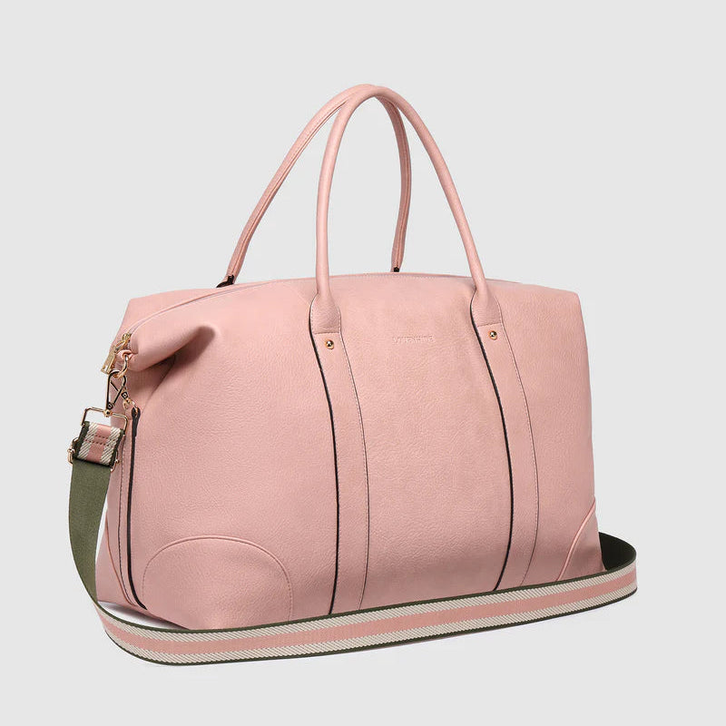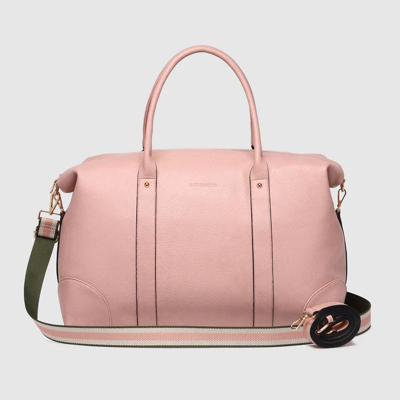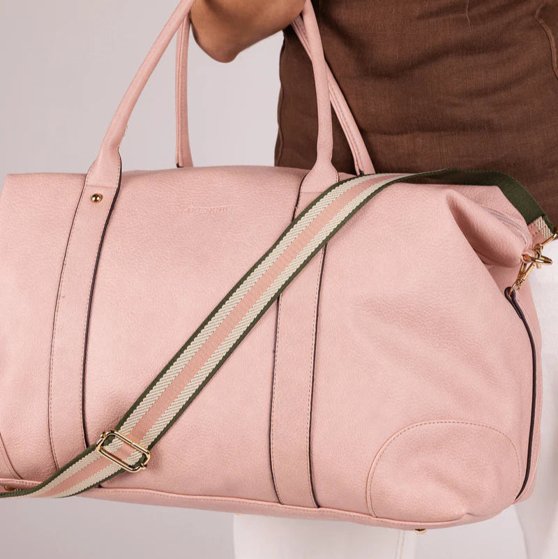 The Louenhide Alexis Blush Weekender Travel Bag with Stripe Strap is a perfect carryall for overnight or weekend adventures!