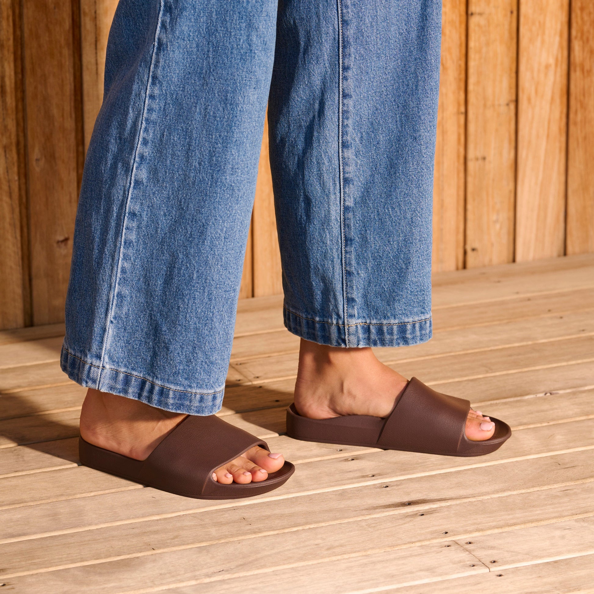 Are you ready to slip on the worlds comfiest slides? On the outside, it may look like your traditional casual footwear, but the Archies Arch Support Slides contain orthotic support to provide unparalleled comfort never seen before with regular slides. Designed by a Melbourne based Physical Therapist, this is the number one choice for off-duty athletes, and those seeking extra support to venture without overusing muscles and tendons.