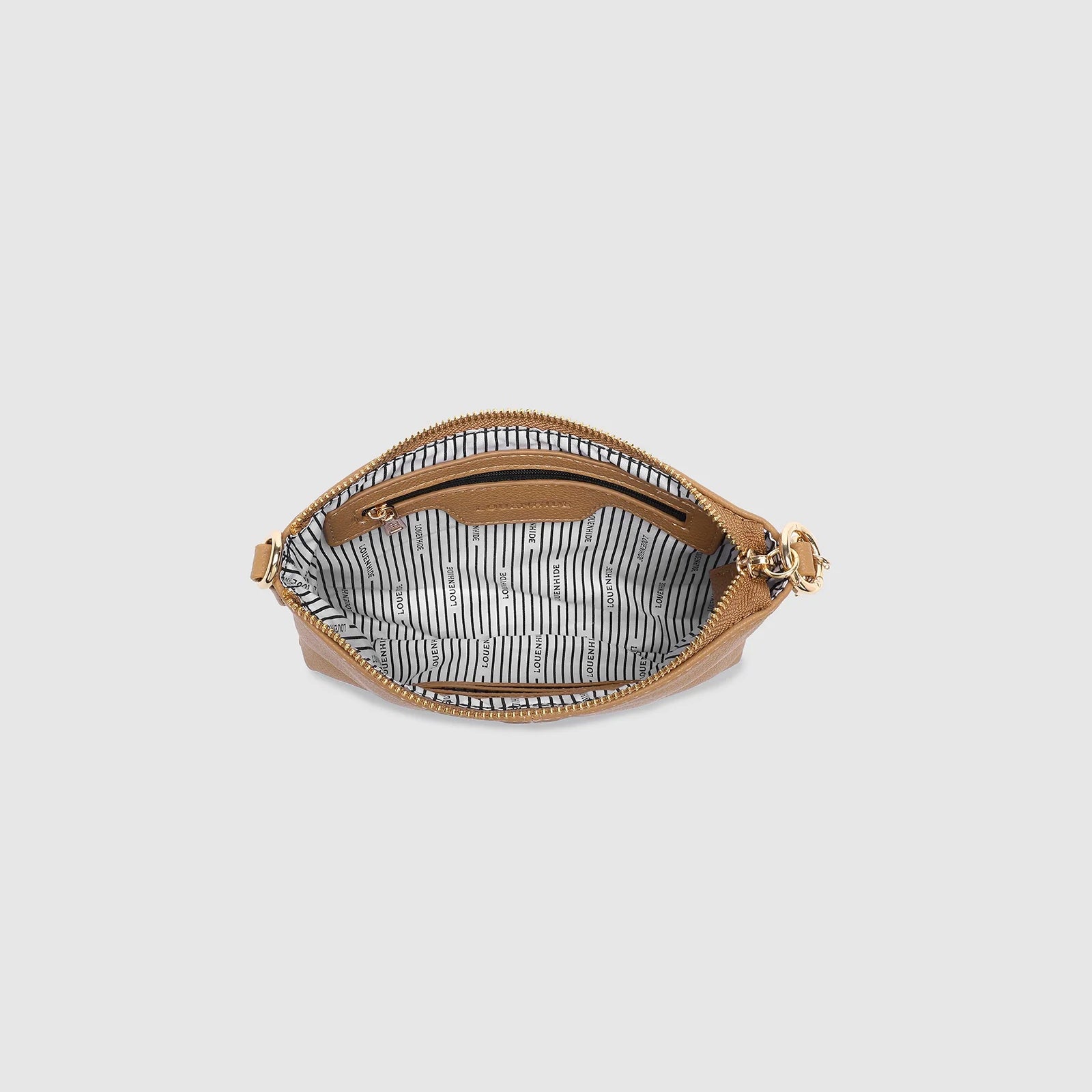 The Baby Sophie Camel Crossbody Bag is an effortlessly compact accessory, made for travel and everyday wear. Thoughtfully crafted from smooth vegan leather, this women’s crossbody bag blends relaxed summer style with refined details. The structured silhouette is accented with light gold hardware, offering a touch of understated elegance wherever your plans take you. Perfect for hands-free days on the go, Baby Sophie Camel features two versatile strap options: a removable adjustable crossbody strap for all-day comfort, and a sleek vegan leather wristlet for an easy day-to-night transition. Inside, you’ll find four cardholders and a secure zip pocket to keep your essentials safe and organised. Whether you’re exploring new cities or heading out for sunset cocktails, this lightweight travel-friendly crossbody is the ideal plus-one for your warm-weather adventures.
