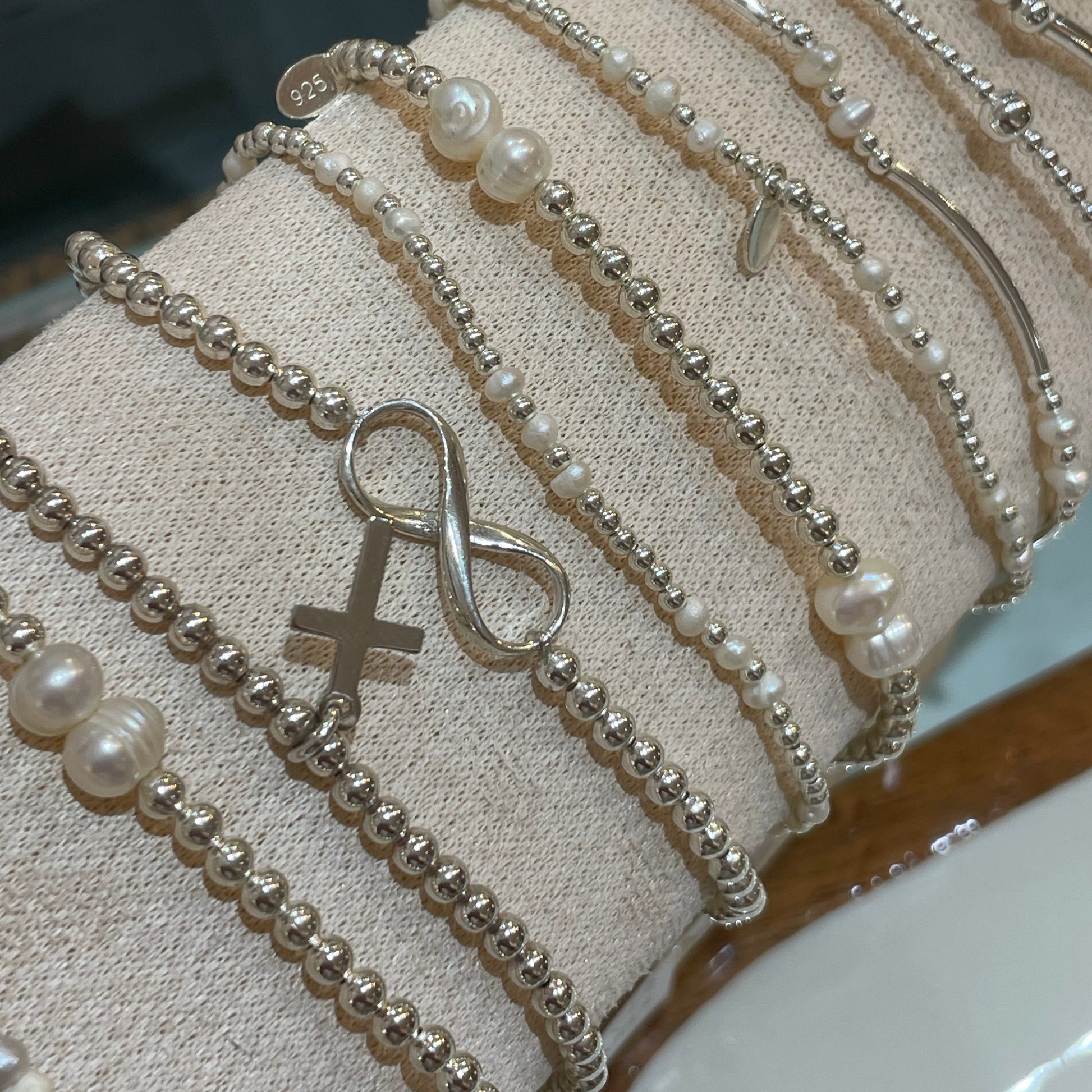 Beautiful, high quality 925 Sterling Silver beaded bracelets. Comes in a range of styles, perfect for stacking!