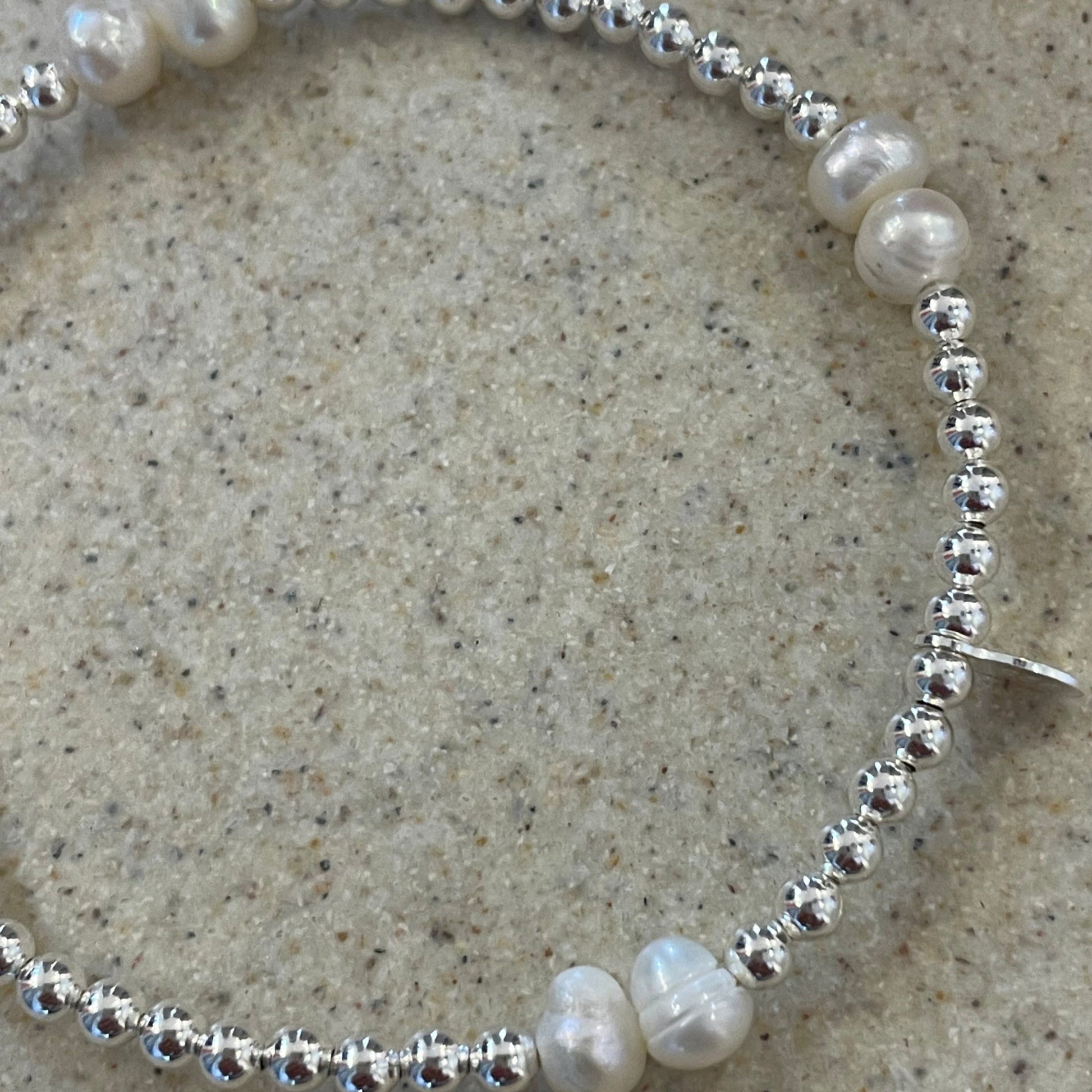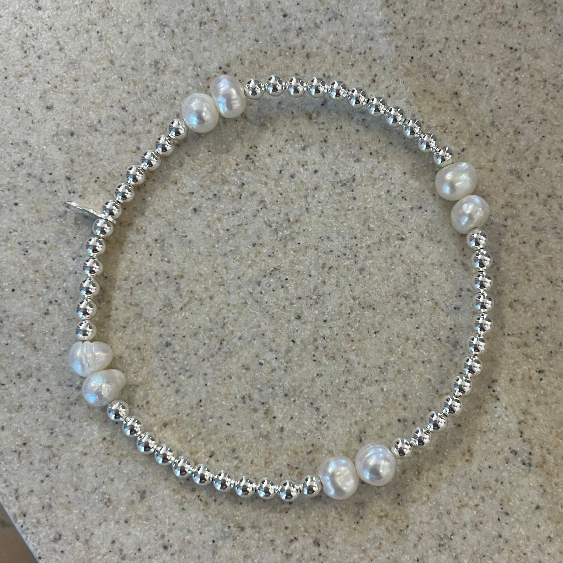 Beaded Sterling Silver & Freshwater Pearl Bracelet