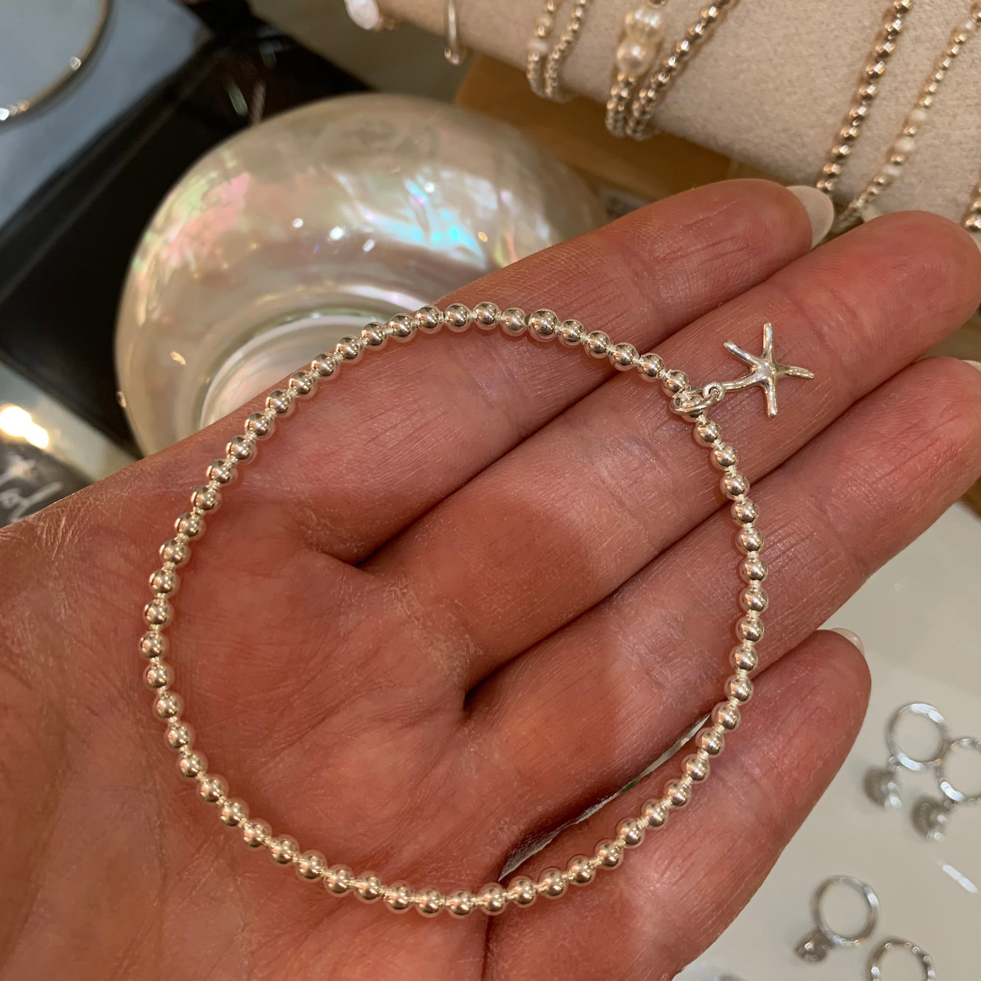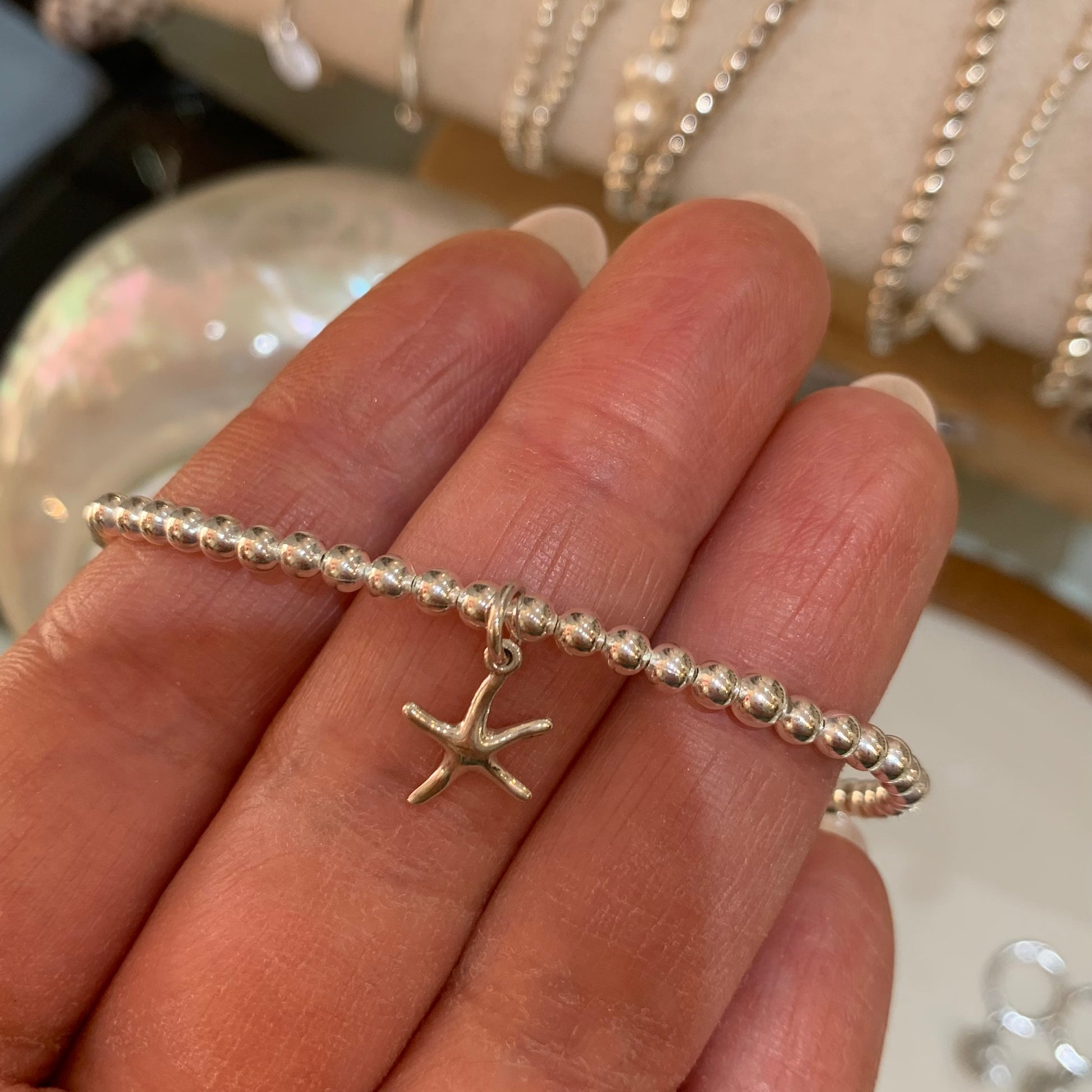 Beaded 925 Sterling Silver Starfish Charm Bracelet