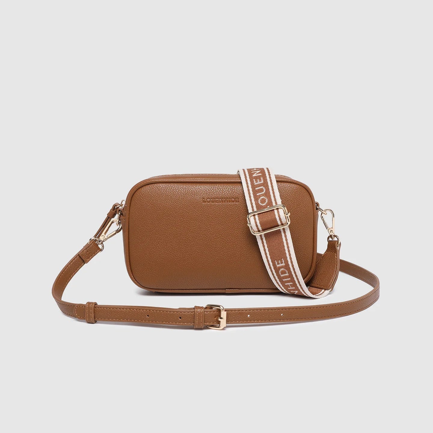 The Bianca Crossbody Bag is a stylish yet practical companion, thoughtfully crafted for life on the move. This women’s crossbody bag features a compact, camera-style silhouette that combines everyday functionality with timeless appeal. Made from buttery soft vegan leather and finished with light gold hardware, Bianca brings a polished touch to casual styling. As a travel-friendly crossbody, she’s lightweight and easy to wear, with two interchangeable strap options: a bold logo webbing guitar strap for statement appeal, or a matching adjustable vegan leather strap for a more refined look. A secure zipper handbag by design, Bianca keeps your essentials safe and within easy reach. Inside, you’ll find two internal pockets to keep your valuables organised and close at hand. Effortlessly versatile, she is the hands-free essential that keeps up with you from daily errands to weekend escapes.