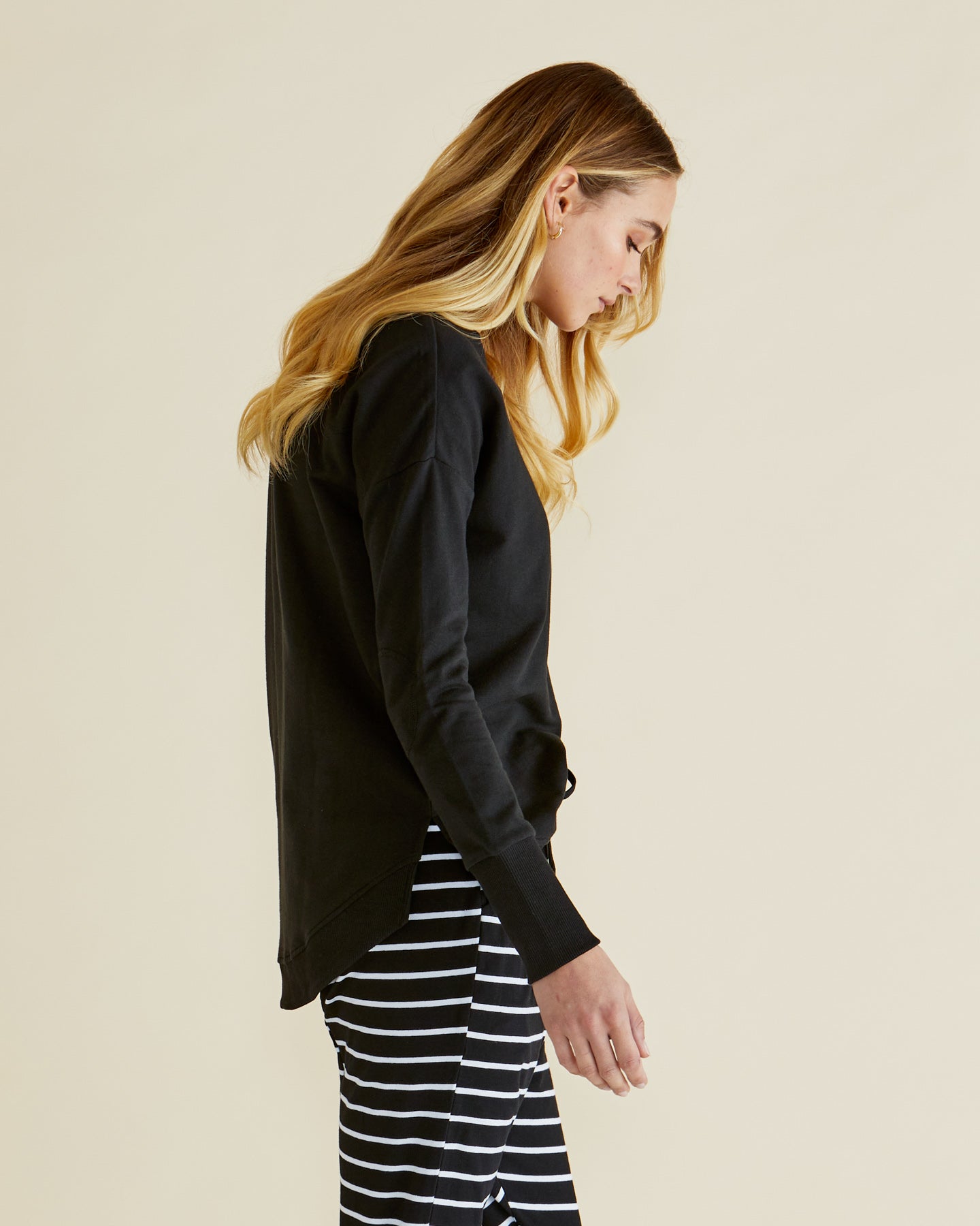Our Lucy French Terry Sweat, the perfect blend of comfort and style. Made from our famous lightweight Terry Cotton, this piece transitions effortlessly from couch to coffee shop. The curved hemline offers a flattering fit, ensuring you feel confident and comfortable. With Betty Basics quality, grab your Lucy Sweat today for effortless style you'll never want to take off!