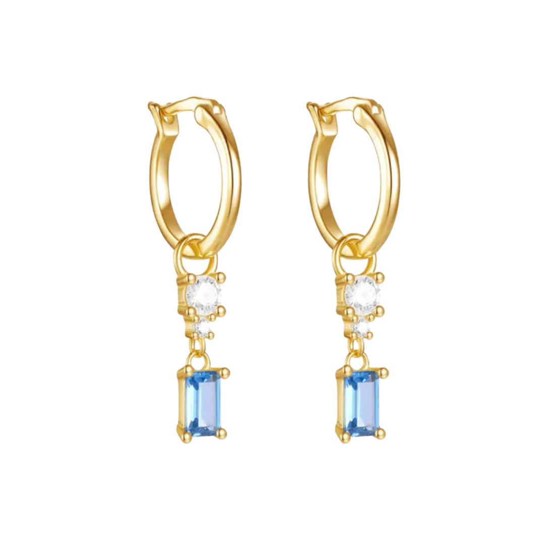 The LOLA JAYE Capri charm huggies are the perfect pair of earrings for the ocean lovers. Featuring removable ocean blue coloured glass charms.