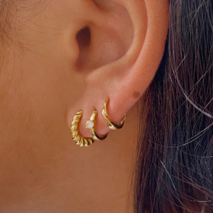 The LOLA JAYE Mae Hoop Earrings are a staple and versatile piece. Featuring a twist or 'croissant' designed hoop, the Mae hoops are the perfect size for everyday wear. These hoops are a great 'everyday' size.