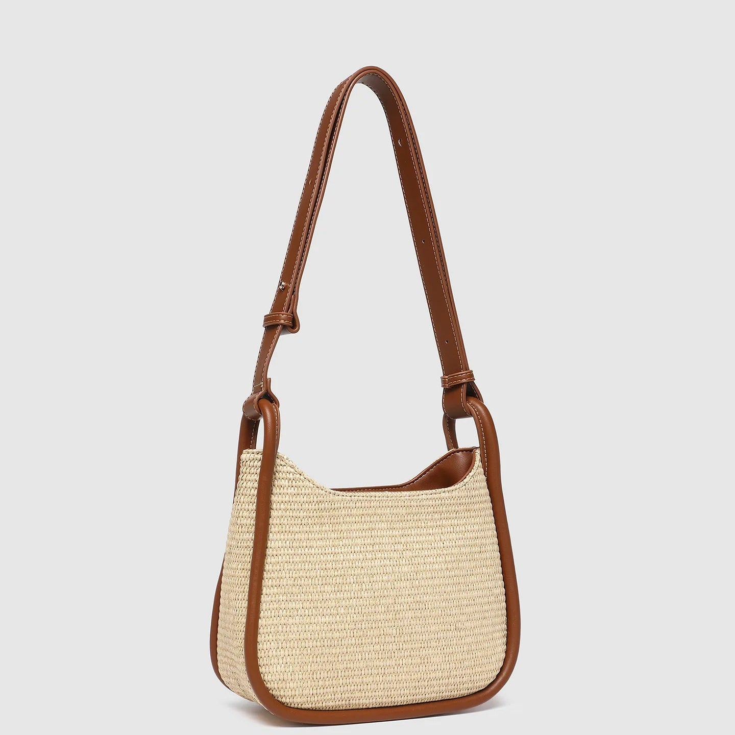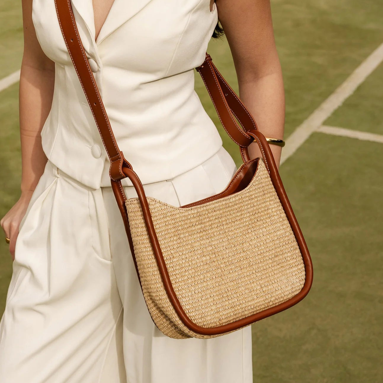 The Clare Raffia Tan Shoulder Bag is a refined warm-weather staple, blending natural texture with structured elegance. This small, structured handbag with an adjustable strap is crafted from natural raffia and buttery soft vegan leather, offering a touch of understated luxury for the modern muse. Thoughtfully designed to carry just the essentials, this raffia shoulder bag features a secure zip closure to keep your belongings safe, while gold-tone hardware adds a polished finish. The woven texture brings a relaxed, resort-inspired feel that’s perfect for long lunches, market mornings, or weekend escapes. Lightweight and effortlessly stylish, Clare Raffia Tan is your go-to piece for warm days and minimalist dressing - delivering timeless charm with contemporary ease.