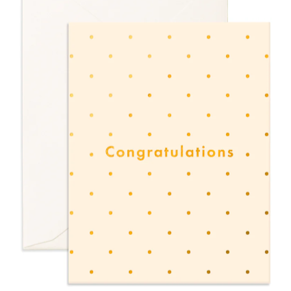 Gold foiled, "Congratulations' with gorgeous mini gold dots. A beautiful simple card.