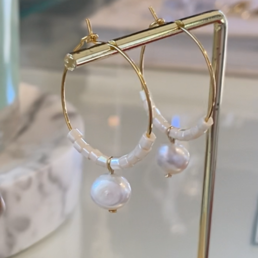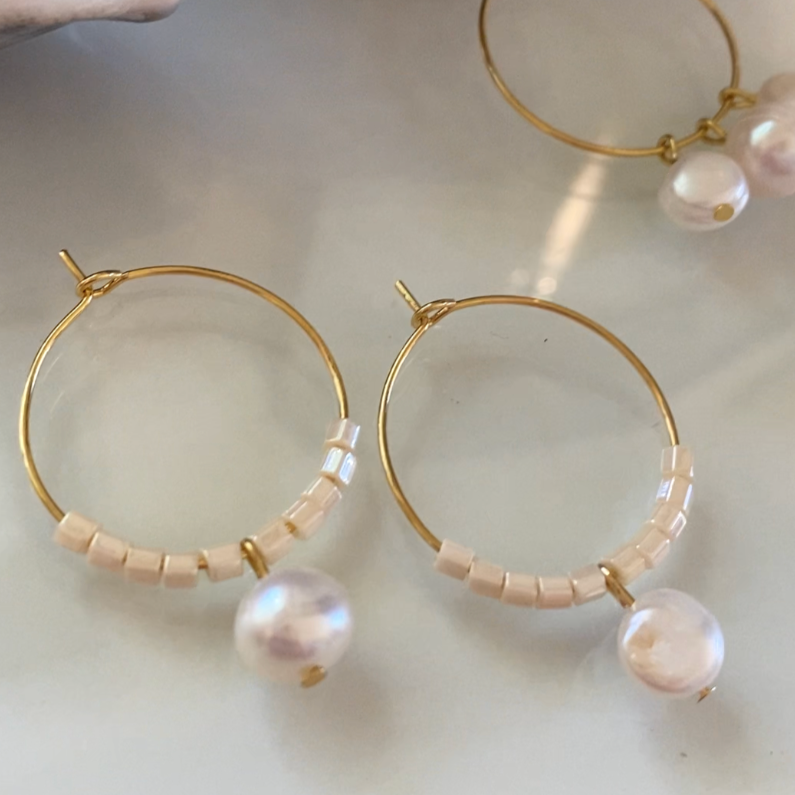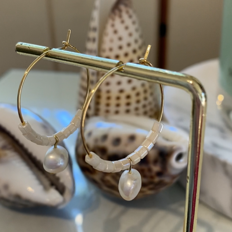 Beautiful, dainty, boho inspired, freshwater pearl hoops.