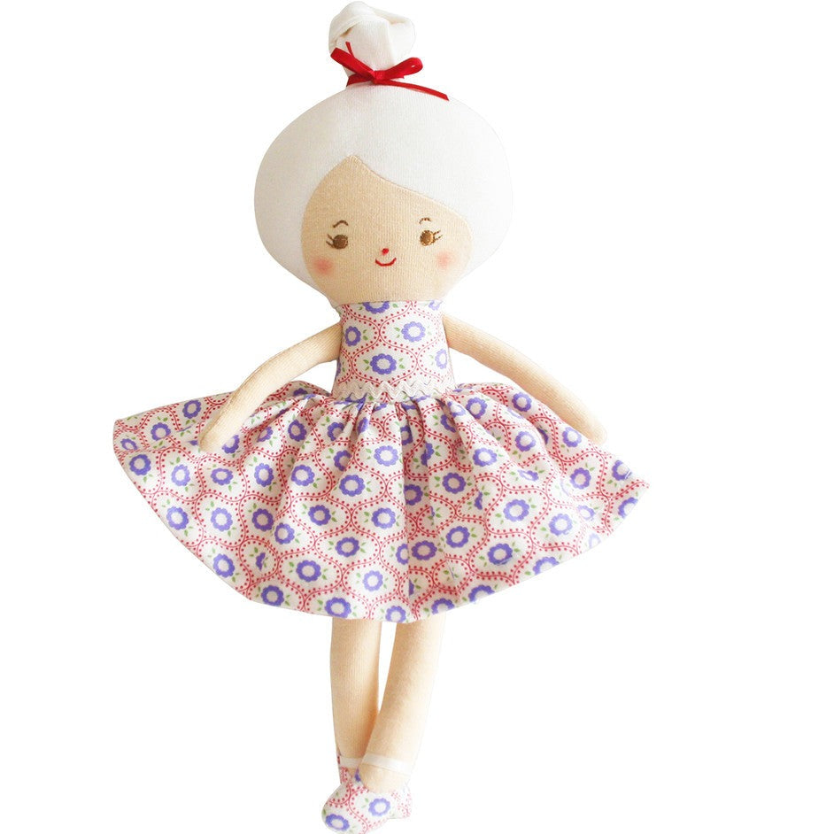 Maggie is a part of our mini doll range. These mini dolls are a beautiful and thoughtful gift, all individually handcrafted by artisans. Made out of linen and cotton, these mini dolls are super soft to touch and made to last. Maggie is so adorable with her sweet patterned cotton dress, matching shoes and little bow in her hair.
