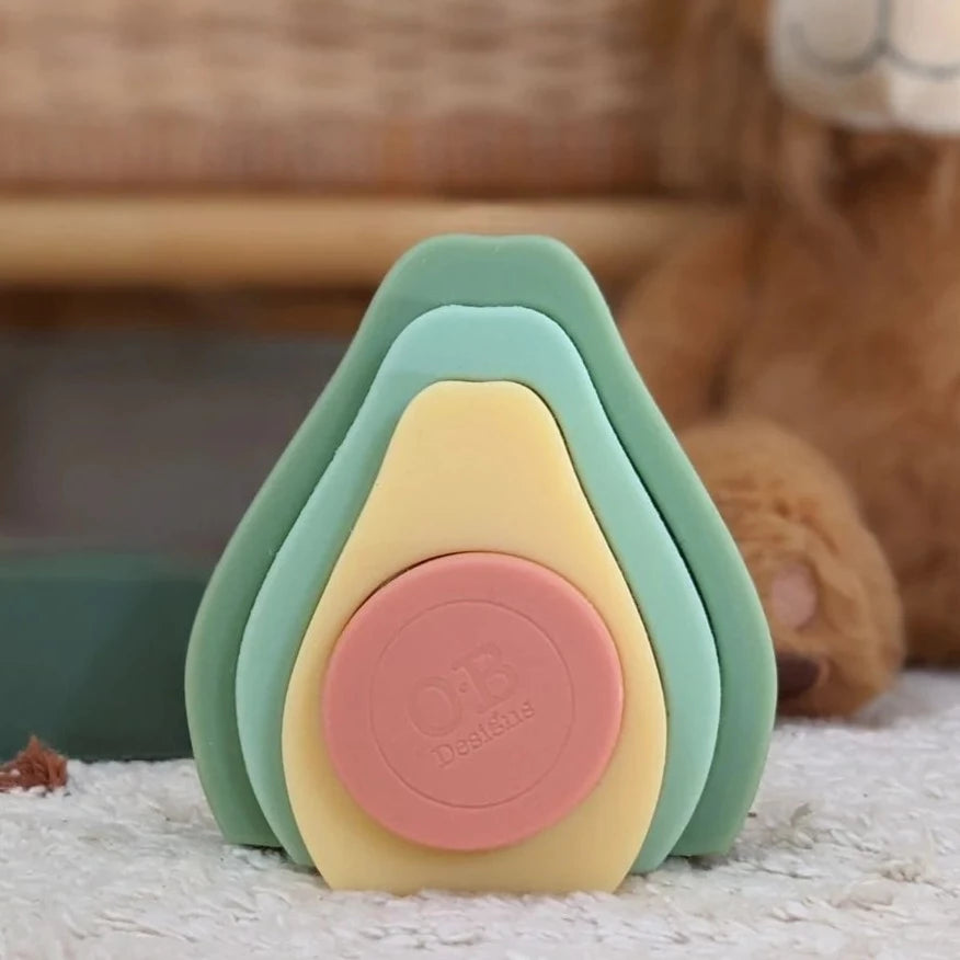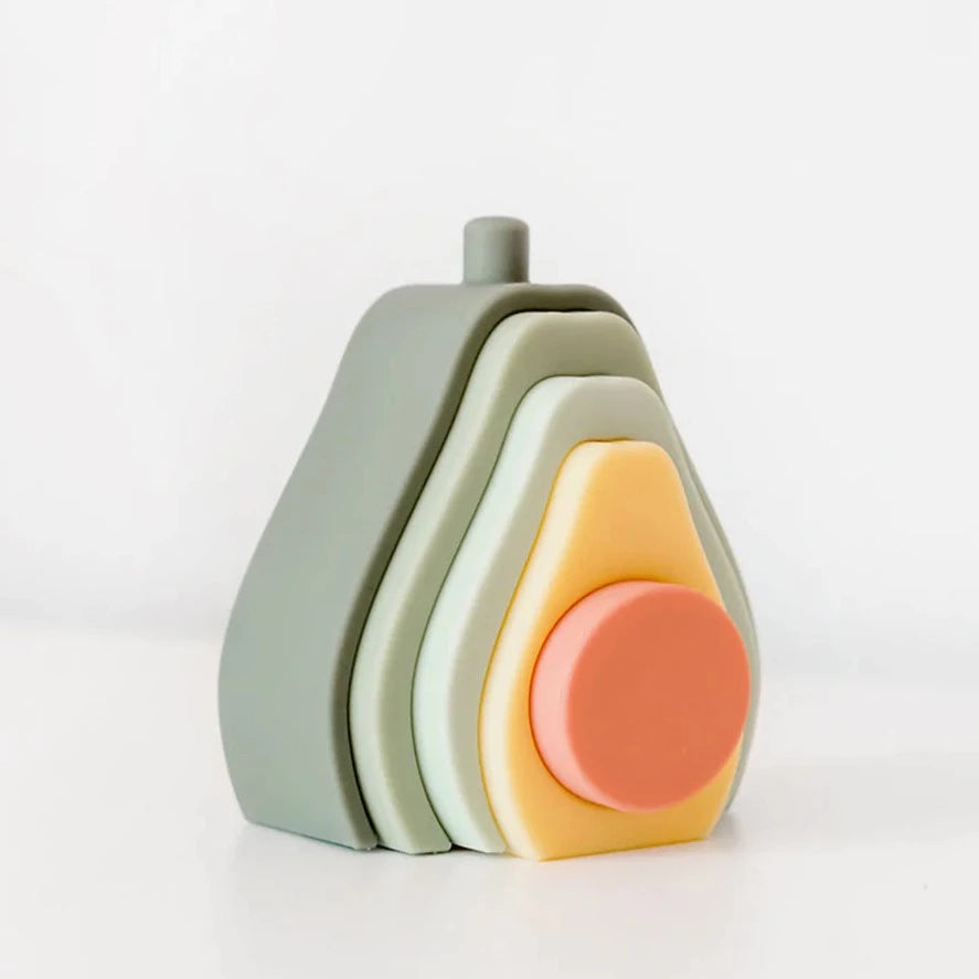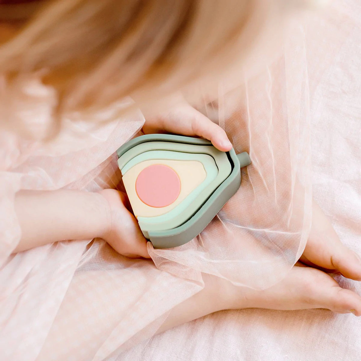 Our Silicone Stacker Avocado Tower is an open-ended building toy for children, designed to unleash creativity and imagination in your child. This versatile, educational toy will encourage hand-eye coordination, creative thinking, and problem-solving skills. It will help improve dexterity and motor development. This classic silicone stacker toy is both educational and fun! All our products are ethically made and eco-friendly.