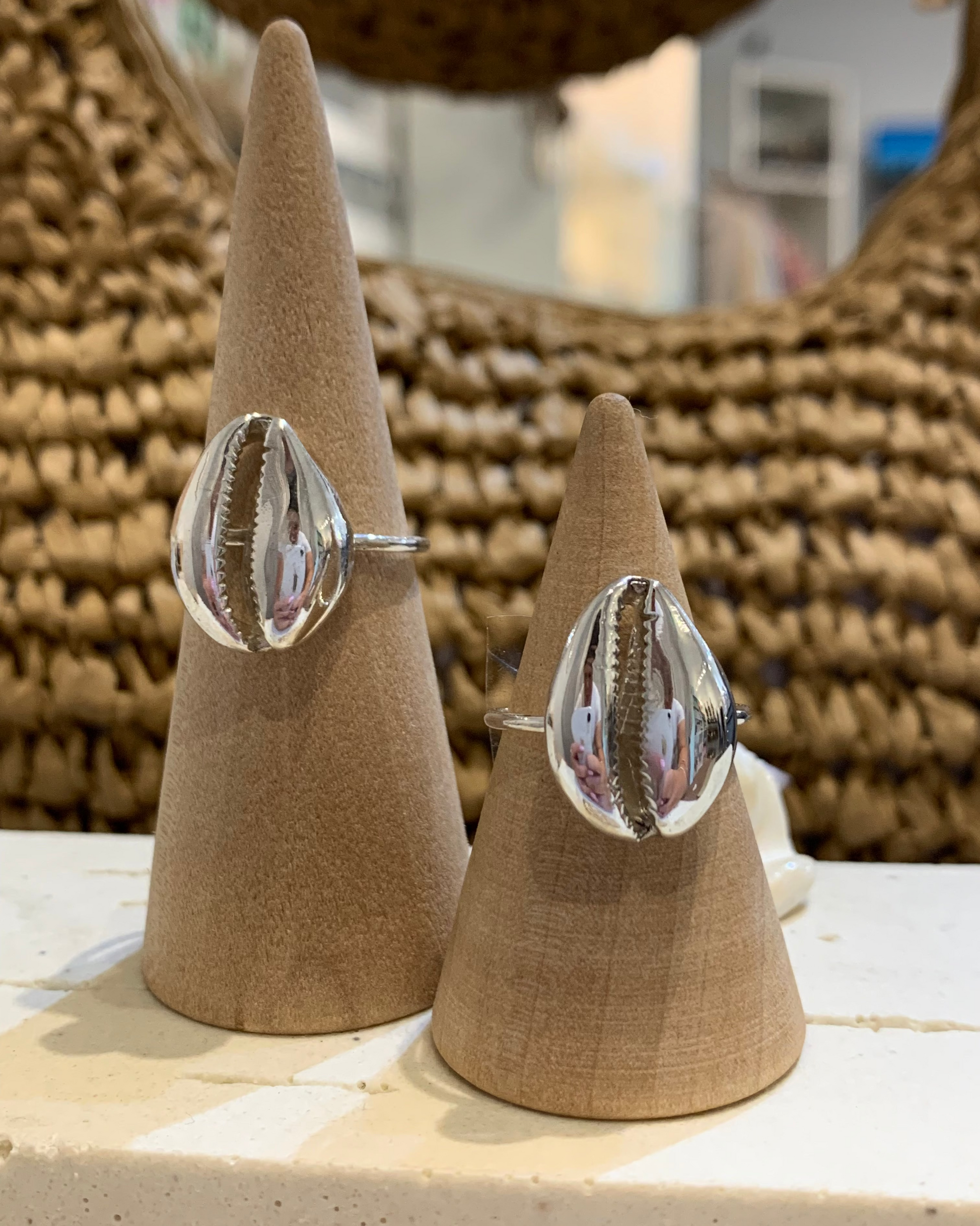 Dimensions: Cowrie 16mm length. Band 1mm thick. Available in sizes 6-10.