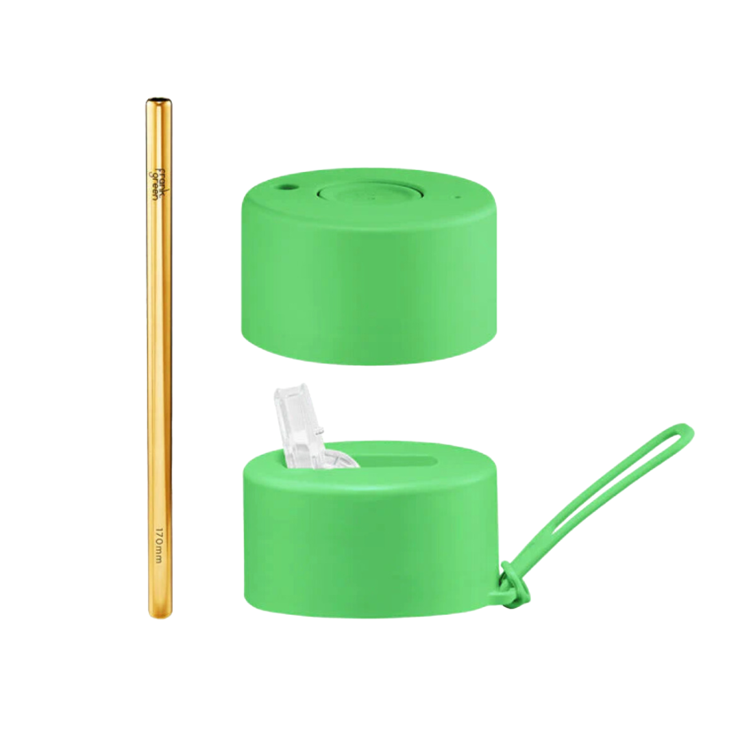 Introducing Frank Green's newest accessory - the Duo Lid Pack! The ultimate addition to your collection, it contains a Push Button lid, Straw Lid hull, Strap and Straw.