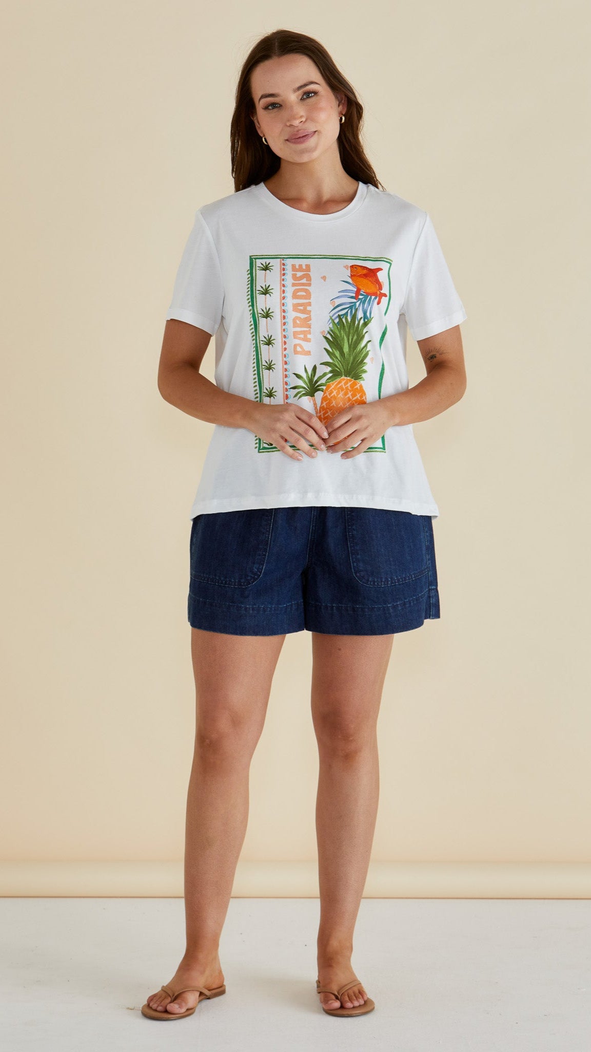 The Ellia Crew Tee offers an effortless, oversized fit crafted from soft cotton jersey. Featuring a crew neck and drop shoulder sleeves, it’s designed for easy layering or solo wear. With a slight high-low hem, this tee provides a comfortable, classic silhouette that works beautifully across transeasonal looks.