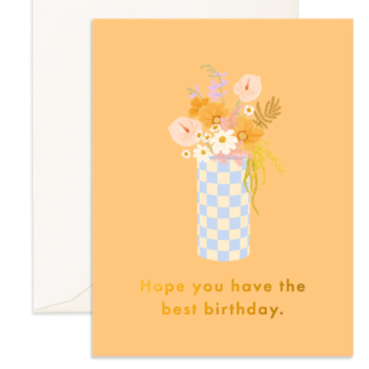 Gold-foiled, Happy Birthday greeting card. Gorgeous illustration. Blank inside. 0