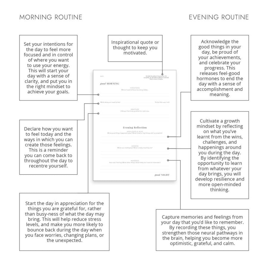 The Good Morning Good Night Journal is here to help you start and finish each day in the most supportive mindset for your overall wellbeing.