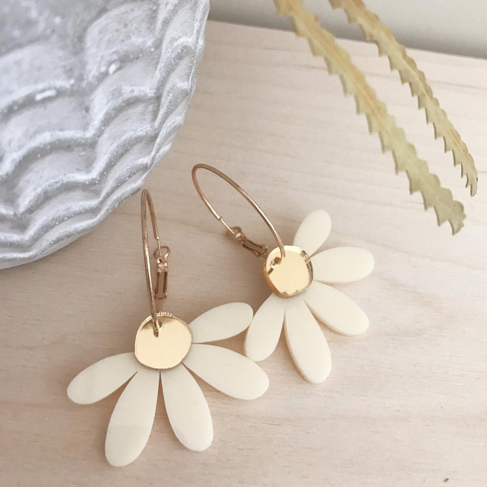 Jumbo Daisy Hoop Earring - Cream and Gold