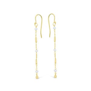 A much loved LOLA JAYE piece, these Freshwater Pearl drop earrings are simply beautiful. Featuring a delicate 18K Gold Vermeil detailed chain and genuine Freshwater Pearls. A stunning layering piece!