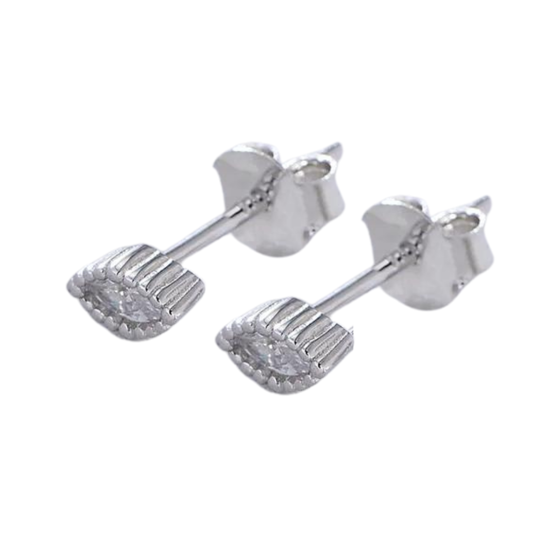 Dimension: 1mm x 5mm rhombus shaped stud. Butterfly backings.