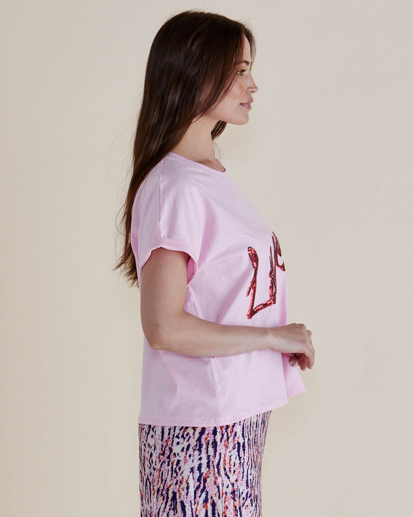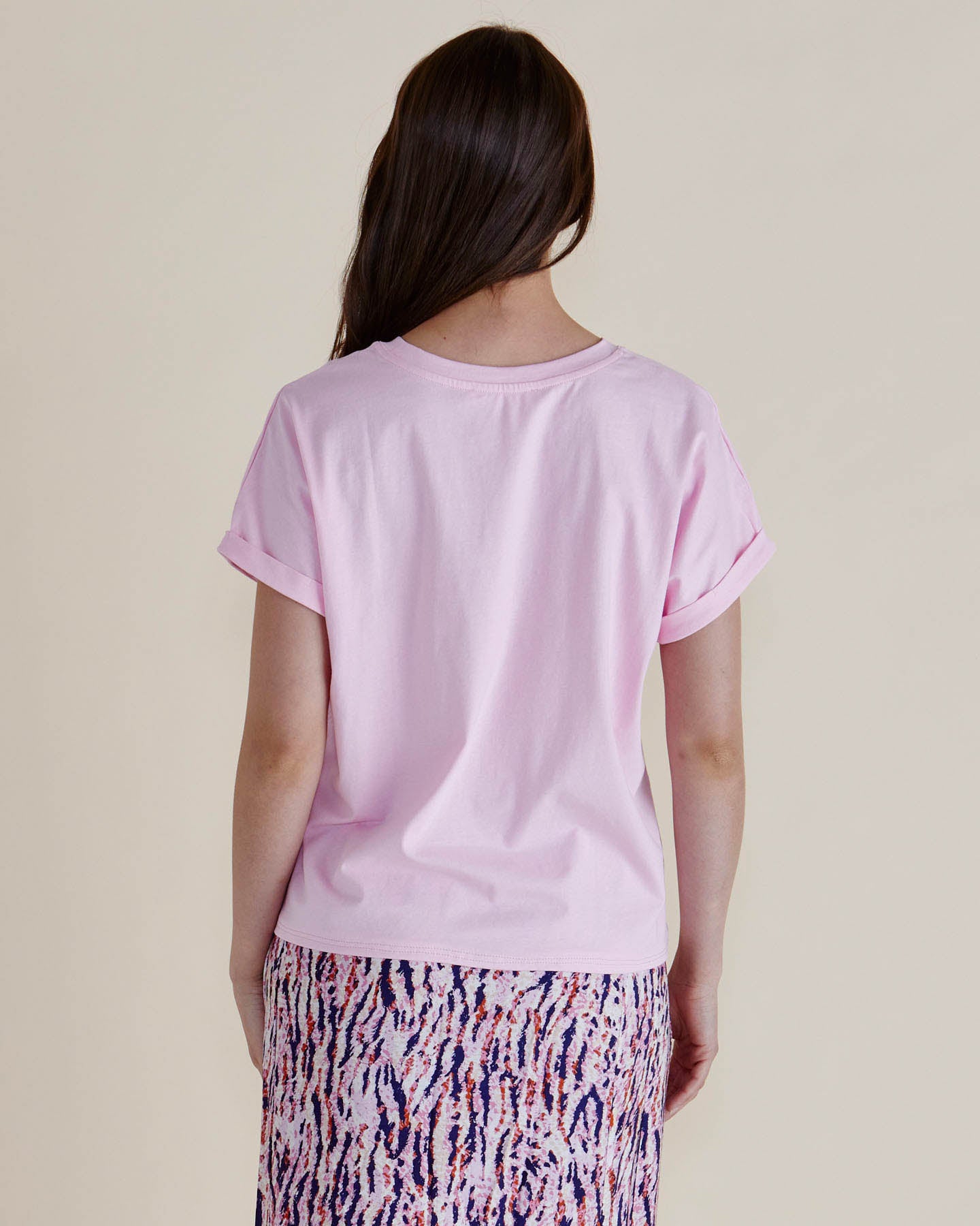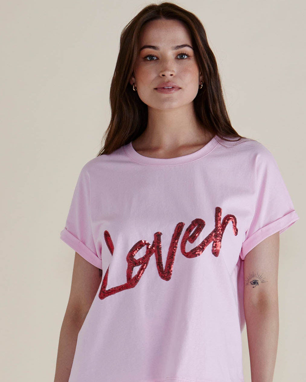 The Lover Tee combines classic cotton jersey with a chic cuffed short sleeve and crew neck for an elevated casual essential. Its slight curved high-low hem creates a polished silhouette, making this relaxed fit top a transeasonal staple for effortless style.