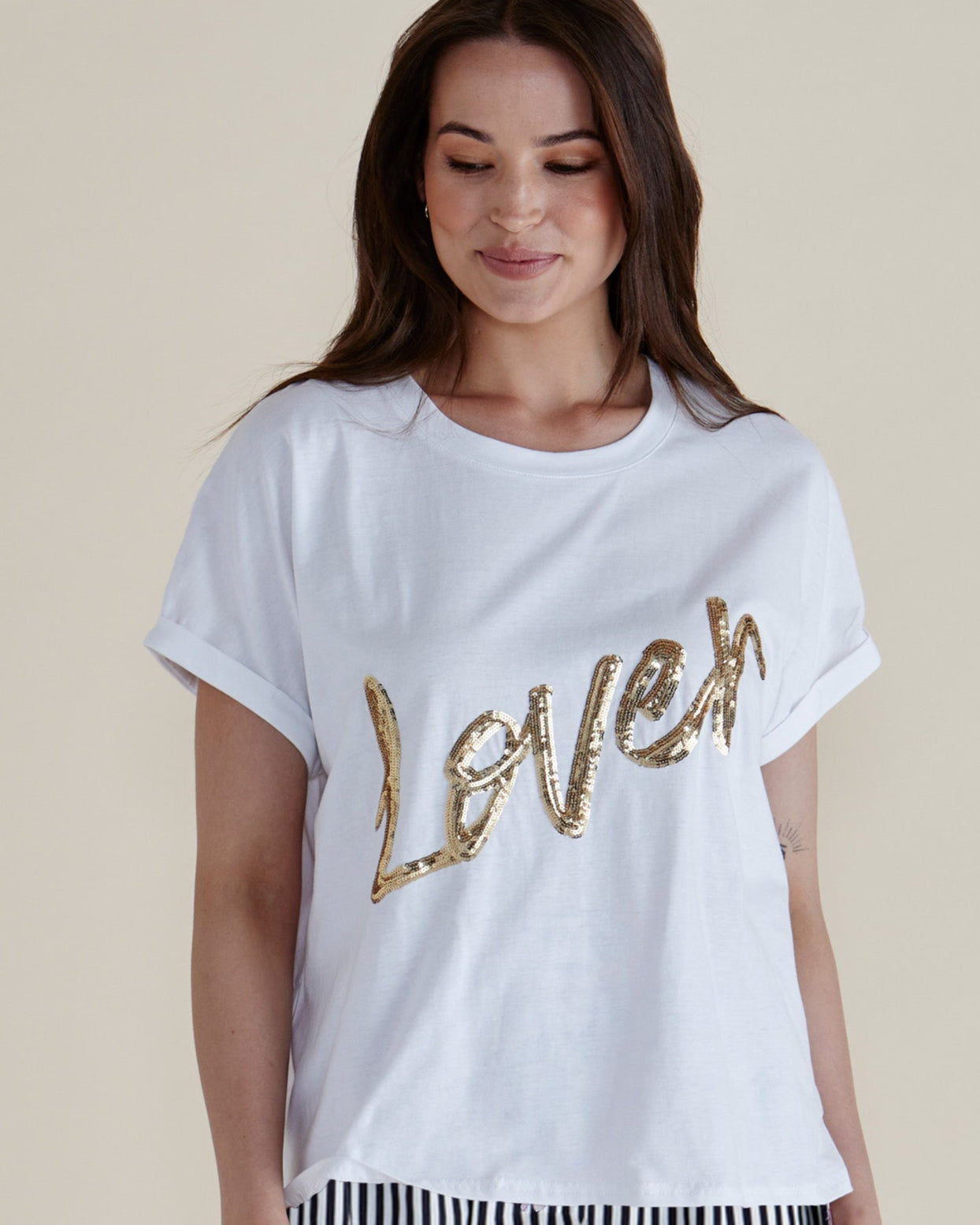 The Lover Tee combines classic cotton jersey with a chic cuffed short sleeve and crew neck for an elevated casual essential. Its slight curved high-low hem creates a polished silhouette, making this relaxed fit top a transeasonal staple for effortless style.