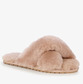 With its soft, premium sheepskin and effortlessly cool design, this slipper wraps your feet in cloud-like softness while adding a chic touch to your loungewear Effortlessly cool and always cozy, it’s the slipper that makes relaxation look good. Whether you’re lounging at home or stepping out for a quick errand, you’ll be snuggling up in luxury every step of the way. Our slippers may feel firm at first, but soften with wear, for lasting comfort.