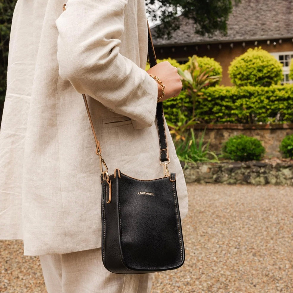 The Parker Phone Crossbody Bag effortlessly combines an elevated aesthetic with everyday functionality. Whether you are heading to the office, running errands or meeting friends for coffee, this minimalistic phone bag will be your new go-to. Parker Camel features an on-trend and modern portrait bag silhouette. Elevate your style with the adjustable webbing guitar strap or keep it simple with the matching vegan leather crossbody strap. Keeping your essentials at your fingertips has never been easier with the back side slip pocket.