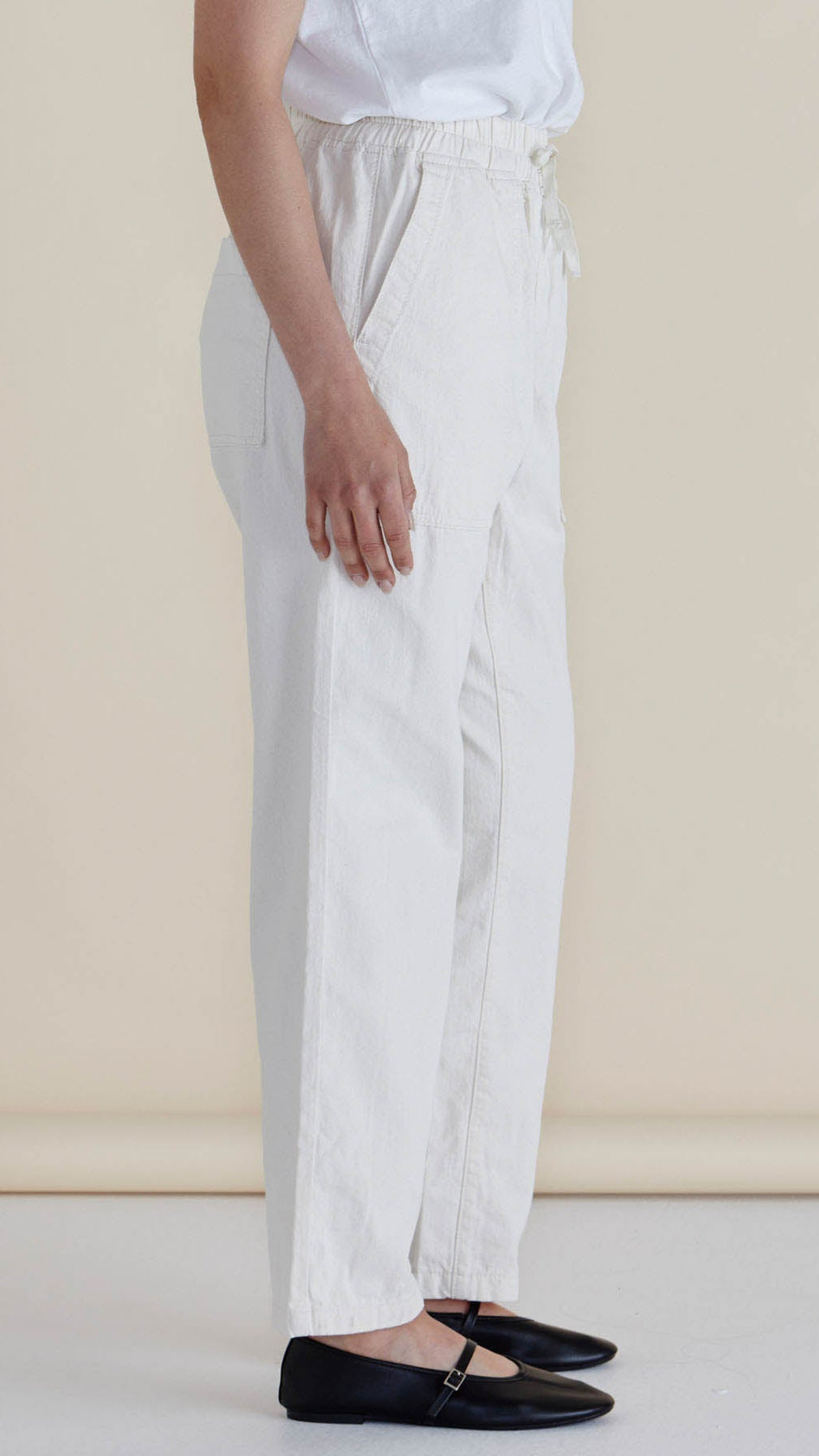 Designed for elevated casualwear, the Quinn Cotton Jogger features an elastic waistband and relaxed fit from waist to leg. Its cropped length and pockets create a chic, comfortable transeasonal essential.