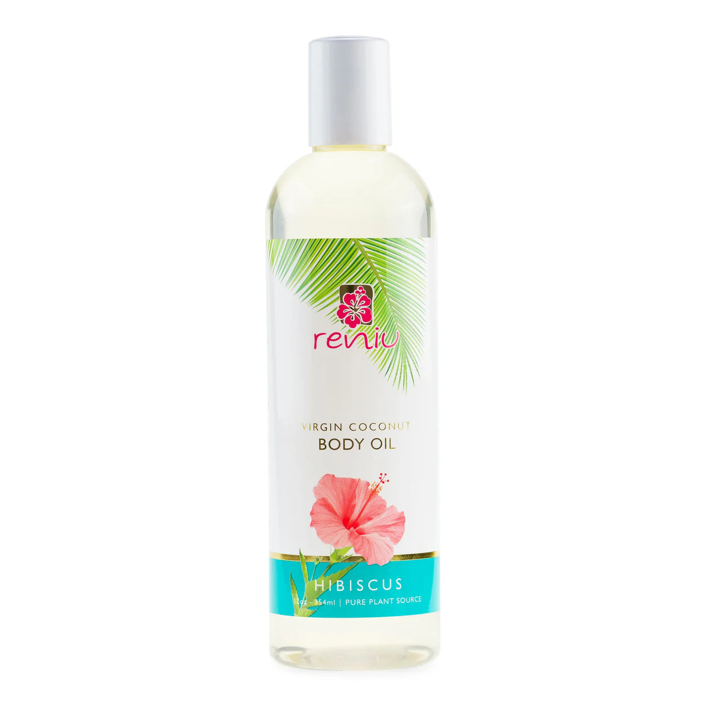 Reniu Virgin Coconut Nourishing Body Oil Hibiscus infusion.