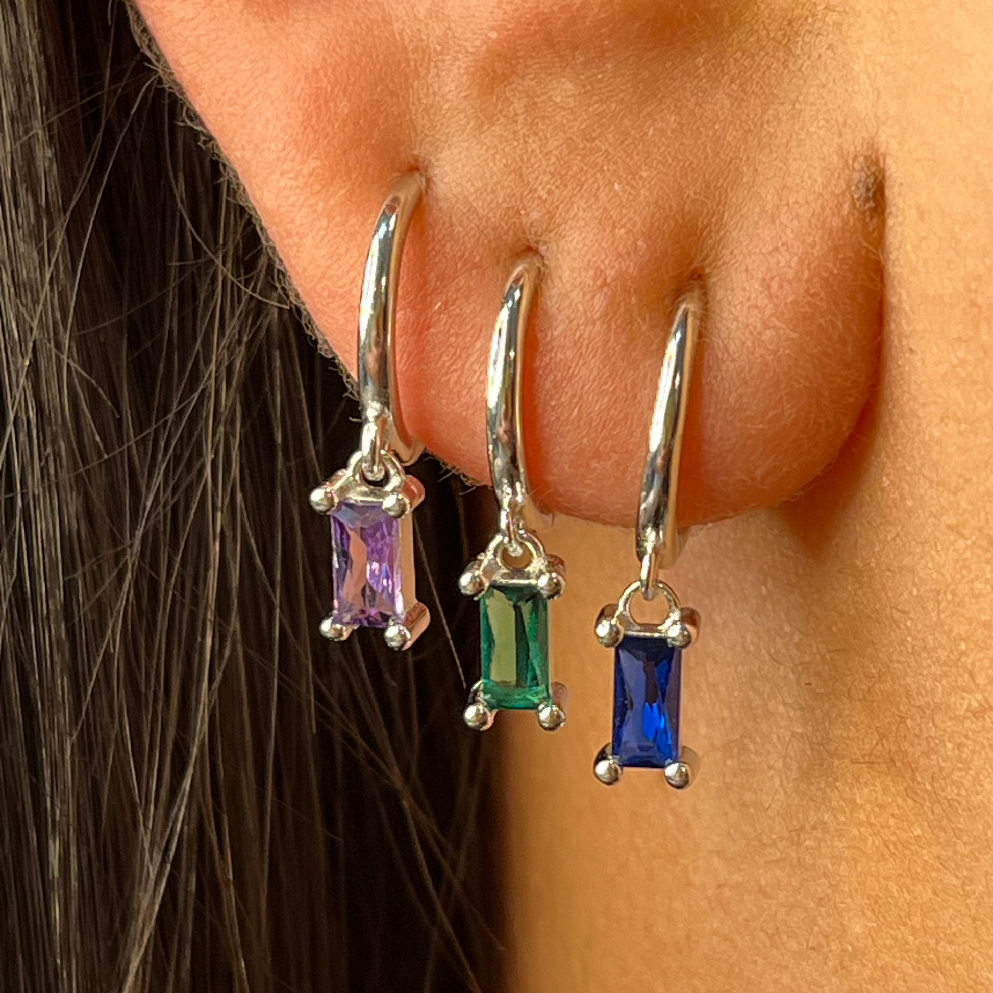 Our Rio drop huggies are the perfect way to add a pop of colour to any ear stack! Our Rio's feature a range of stunning, deep coloured rectangular drop charms.