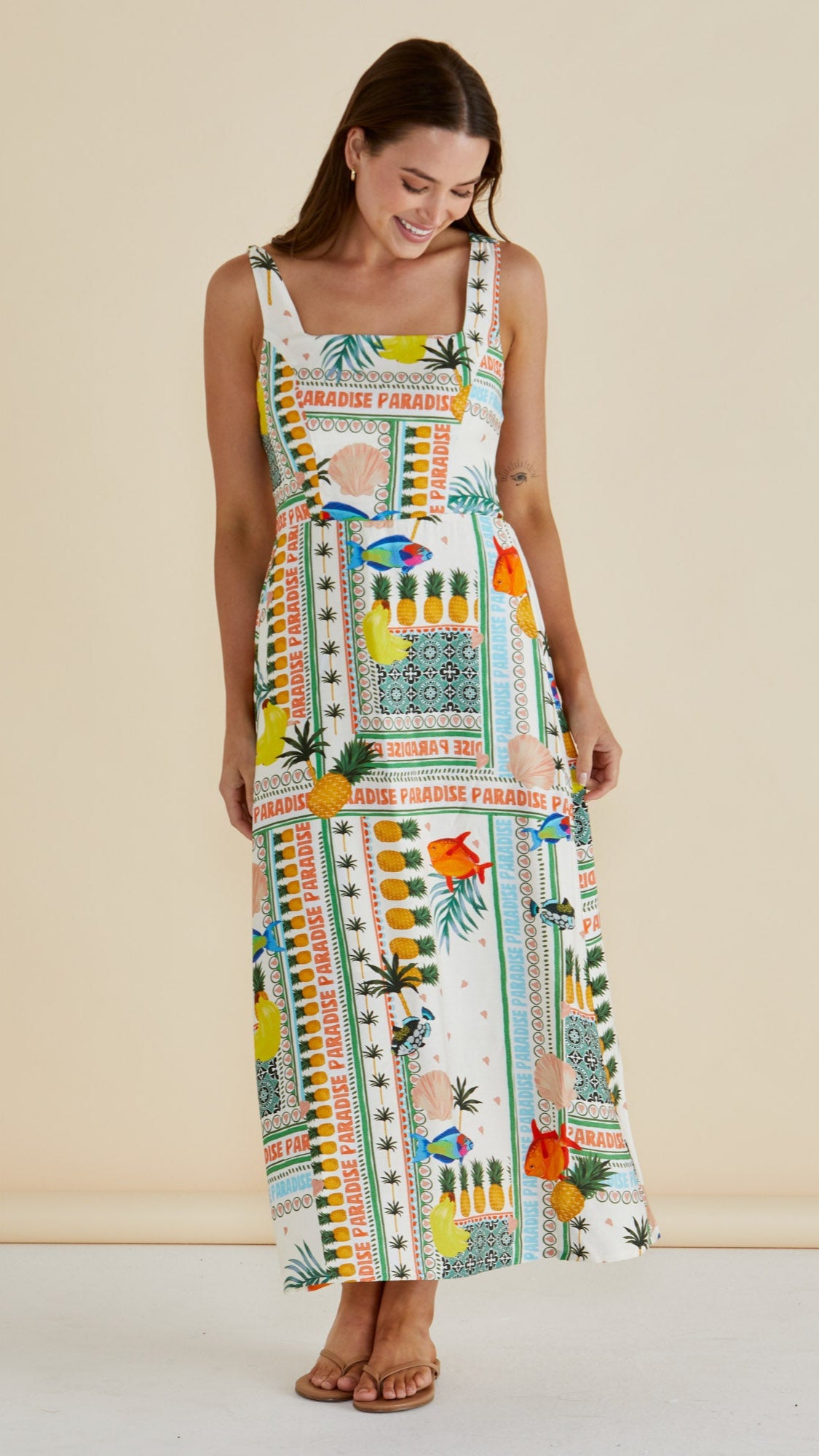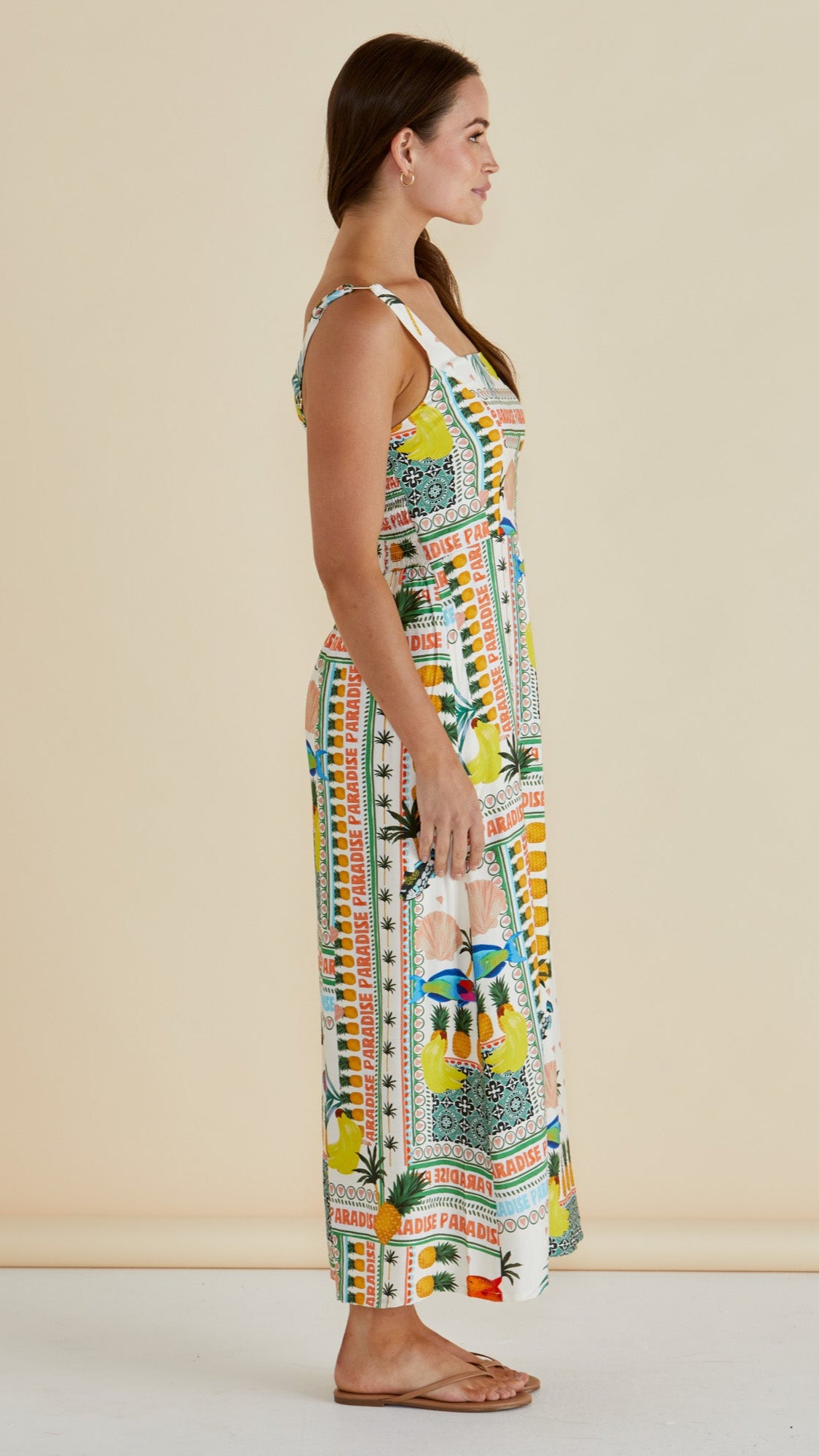 The Tegan Midi Dress offers a flattering fitted silhouette with a square neckline and shirred back panel for comfort. Crafted from a soft viscose blend, it features side splits and a midi length for elevated style. A classic, effortless dress designed for transeasonal elegance.