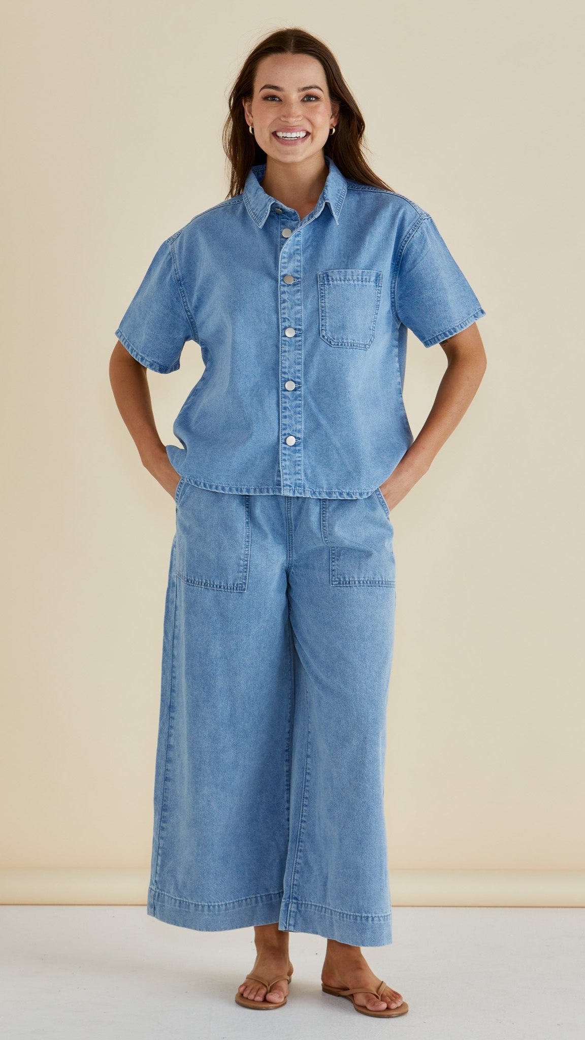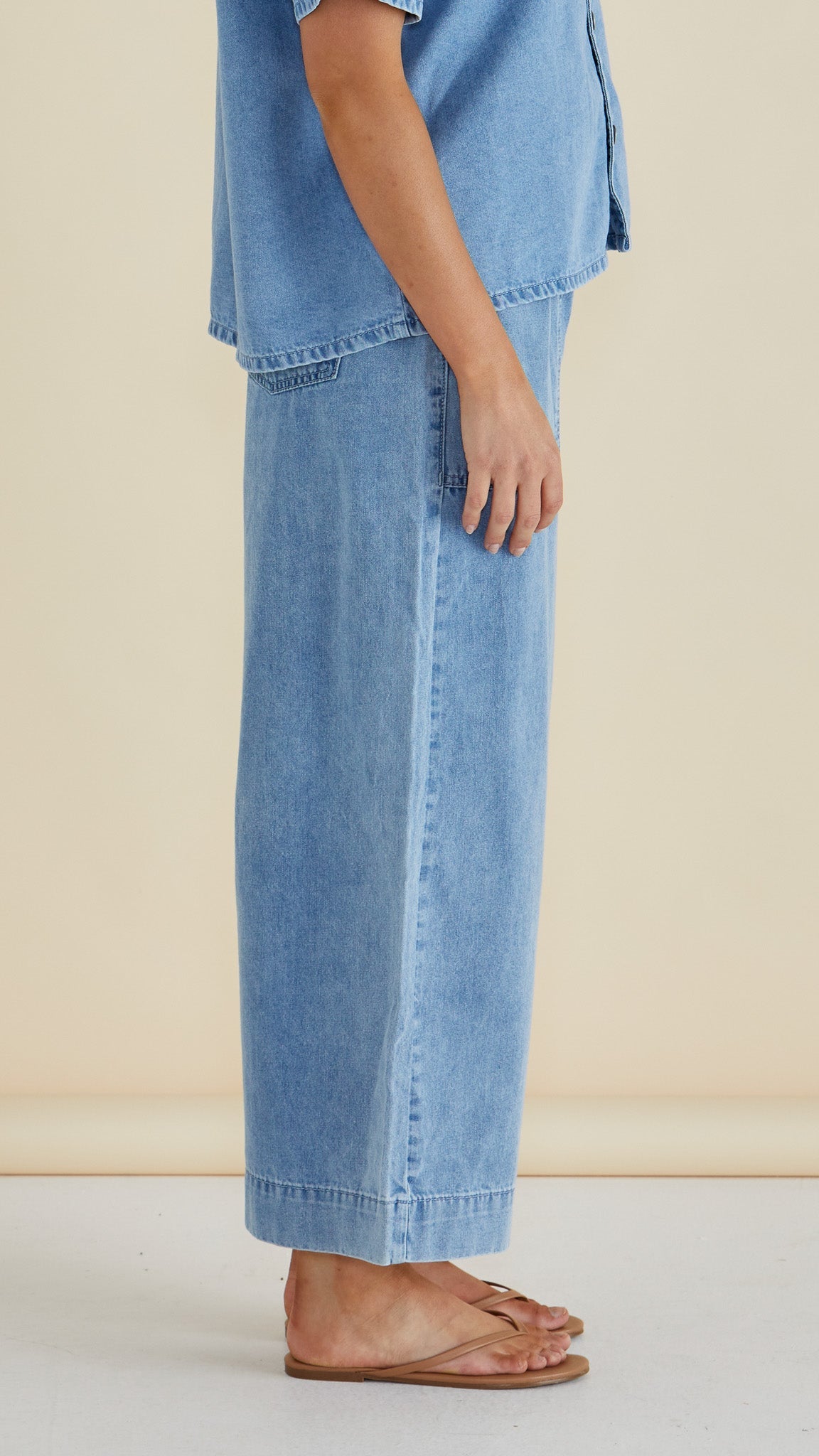 The Saffra Relax Leg Jean blends classic denim feel with modern comfort through its elasticated waistband and relaxed fit. Mid-high rise and patch pockets add practicality to its elevated silhouette. These transeasonal jeans are an effortless way to stay comfortable and polished all day.