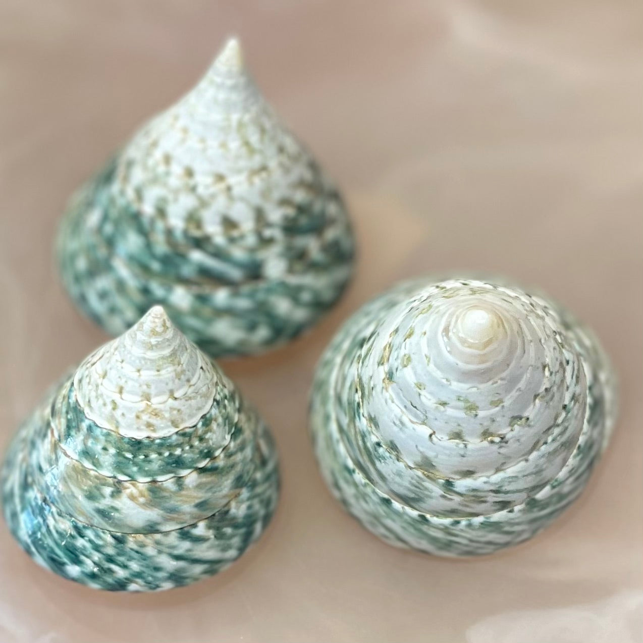 Enhance your coastal decor with the exquisite Tectus Pyramis Pearlised Shell. This beautifully natural shell, measuring approximately 6cm, showcases a stunning pearlised sheen that catches the light and adds a touch of elegance to any space. It has unique and very beautiful sea-green markings.