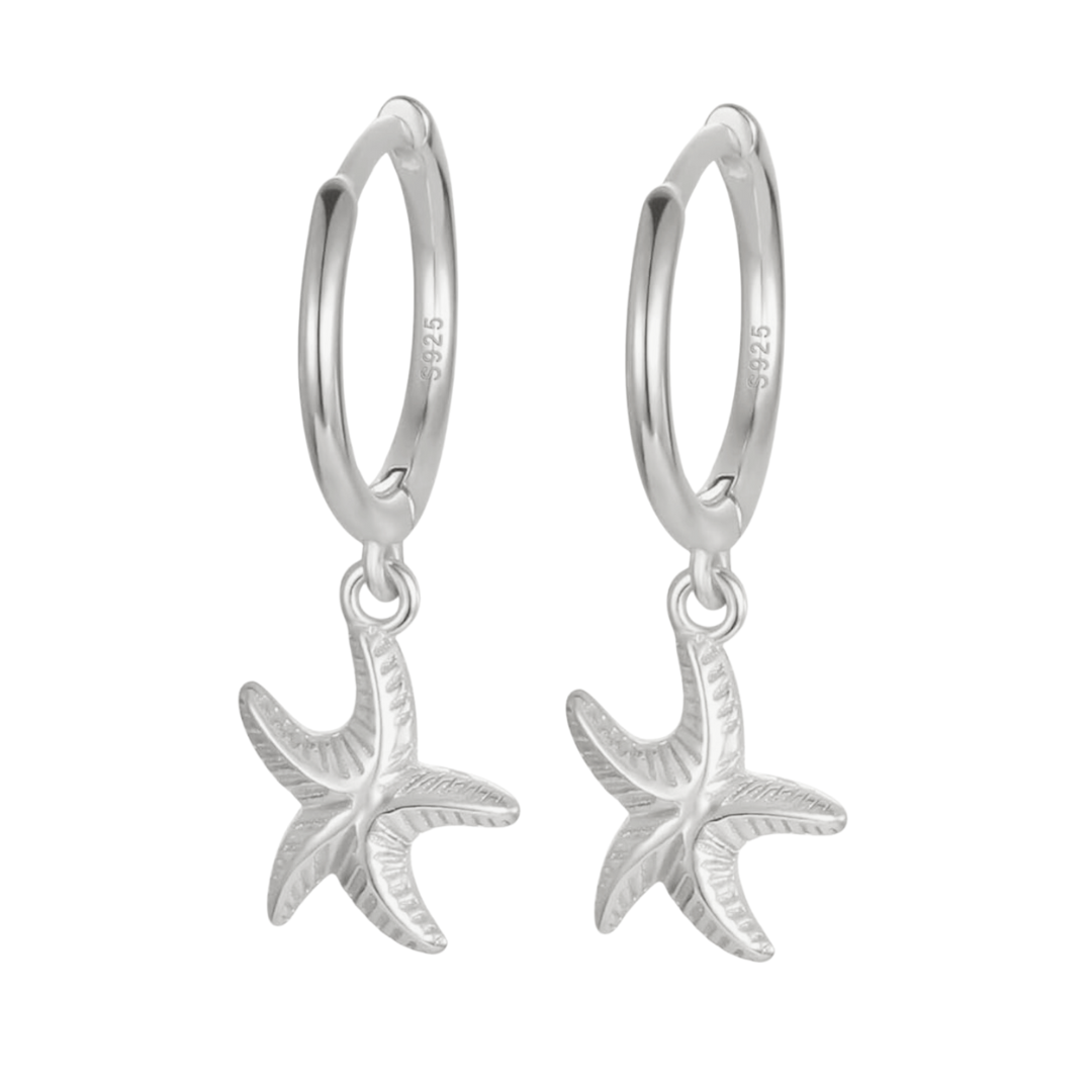 Sea Star Starfish Huggie Earrings Silver