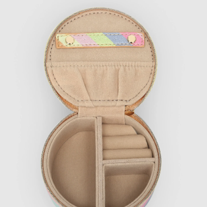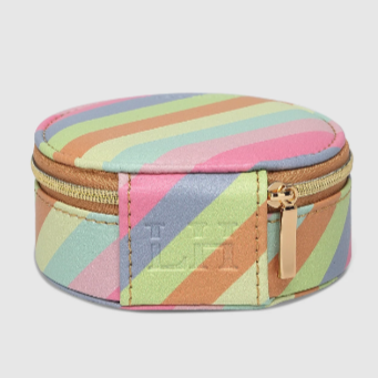 The Louenhide Sisco Pastel Stripe Jewellery box is a gorgeous travel case ideal for storing your precious gems. Organise your essential items easily with three ring rolls, two compartments, an elasticated slip pocket and a press stud tab for earrings. Structured and protected, this affordable jewellery case will be your new travel companion.