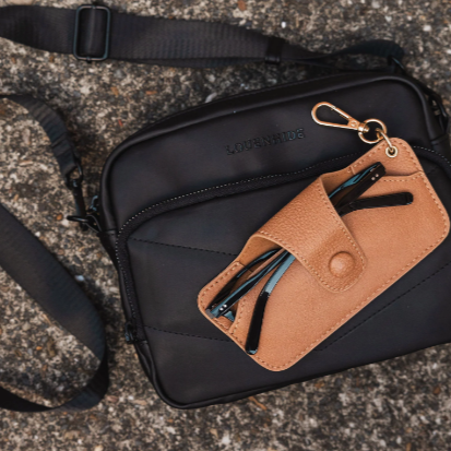 The Skittle Sunglass Case is the perfect blend of style and functionality for your everyday eyewear. For ultimate convenience, effortlessly attach to your keys or handbag with the light gold hardware keyring clasp. Without compromising on style, the exterior features a gorgeous vegan leather, while the interior is lined with soft suede material to keep your everyday eyewear protected. Whether it's your favourite sunglasses or your reading glasses, they will stay protected and safe with the secure metal clasp. Sunglass Case makes the perfect gift for any occasion.