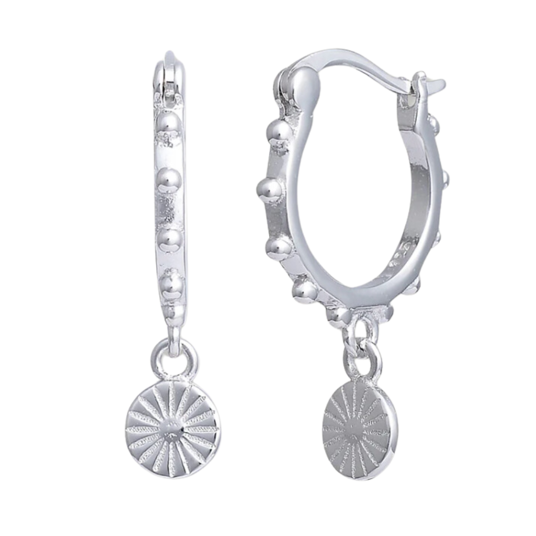 The LOLA JAYE Soleil Charmed Hoops are for the sun loving, endless summer chasing girl. A stunning boho coastal inspired pair of earrings. 'Soleil' meaning sun in french, these earrings feature a sunny inspired dangle charm and a detailed hoop. A slightly larger earring style compared to huggies, perfect for stacking!