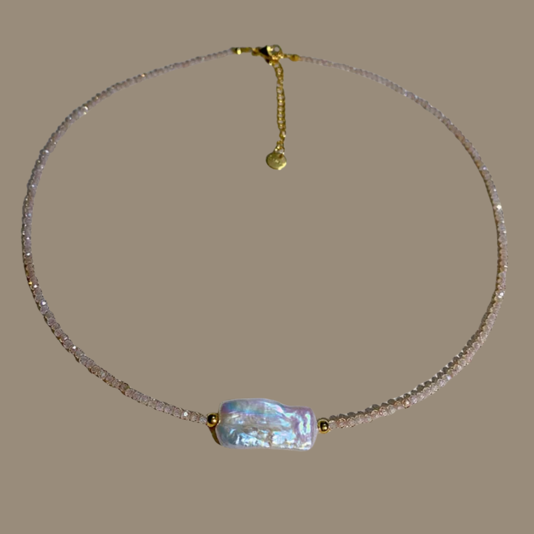 A shimmering strand of fine champagne coloured beads finished with a Freshwater Biwa Pearl centre piece—Lotti brings a little glow to sun-drenched days. Light, breezy, and easy to wear. Layer it up or let it shine solo.