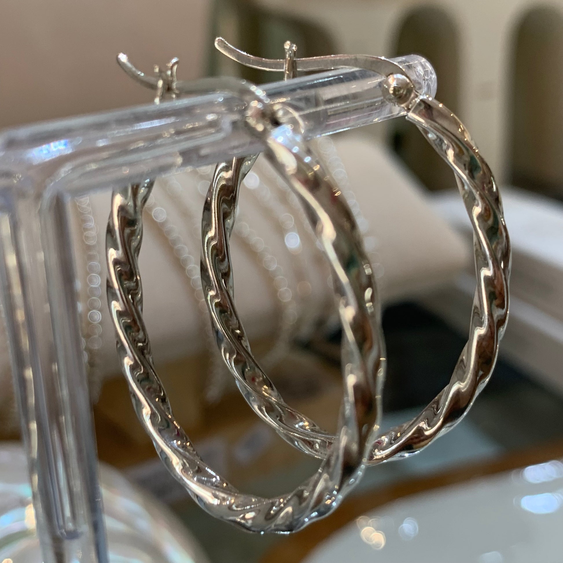 Crafted from 925 Sterling Silver, these hoop earrings feature a classic rope twist design. Lightweight, easy to wear, and perfect for everyday style.